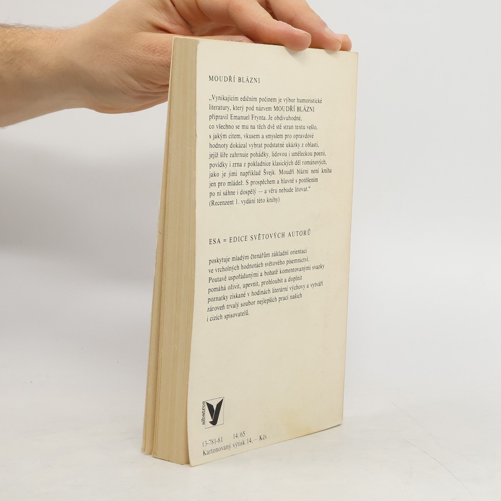 Výbor seznamuje s postavami nejslavnějších taškářů, šprýmařů, moudrých bláznů - hrdinů světově proslulých i méně známých děl. Vyprávění o Palečkovi, Kacafírkovi, Enšpíglovi, Švejkovi a dalších je provázeno informacemi o době, autorech (H. Ch. Andersen, P. Bischel, L. Carroll, A.P. Čechov, J. Hašek, J. Haussmann, I. Herrmann, V. Chlebnikov, Ch. Morgenstern, I. Olbracht, K. Poláček, J. Reeves, J. Thurber) a vzniku. Oblíbená čítanka českého a světového humoru. 4. vydání