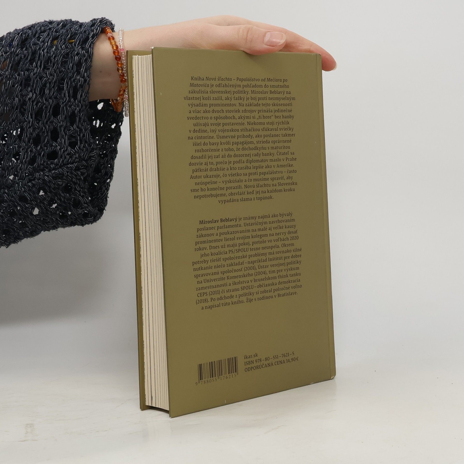 Kniha Nová šľachta – Papalášstvo od Mečiara po Matoviča je odľahčeným pohľadom do smutného zákulisia slovenskej politiky. Miroslav Beblavý na vlastnej koži zažil, aký ťažký je boj proti nezmyselným výsadám prominentov. Na základe tejto skúsenosti a viac ako dvoch stoviek zdrojov prináša jedinečné svedectvo o spôsoboch, akými si „tí hore“ bez hanby užívajú svoje postavenie. Niekomu stojí rýchlik v dedine, iný vojenskou stíhačkou sfúkaval sviečky na cintoríne. Úsmevné príhody, ako poslanec takmer išiel do basy kvôli papagájom, strieda oprávnené rozhorčenie z toho, že dôchodkyňu s maturitou dosadil jej zať až do dozornej rady banky. Čitateľ sa dozvie aj to, prečo je podľa diplomatov maslo v Prahe päťkrát drahšie a kto zarába lepšie ako v Amerike. Autor ukazuje, čo všetko sa proti papalášstvu – často neúspešne – vyskúšalo a čo musíme spraviť, aby sme ho konečne porazili. Novú šľachtu na Slovensku nepotrebujeme, obzvlášť keď jej na každom kroku vypadáva slama z topánok.