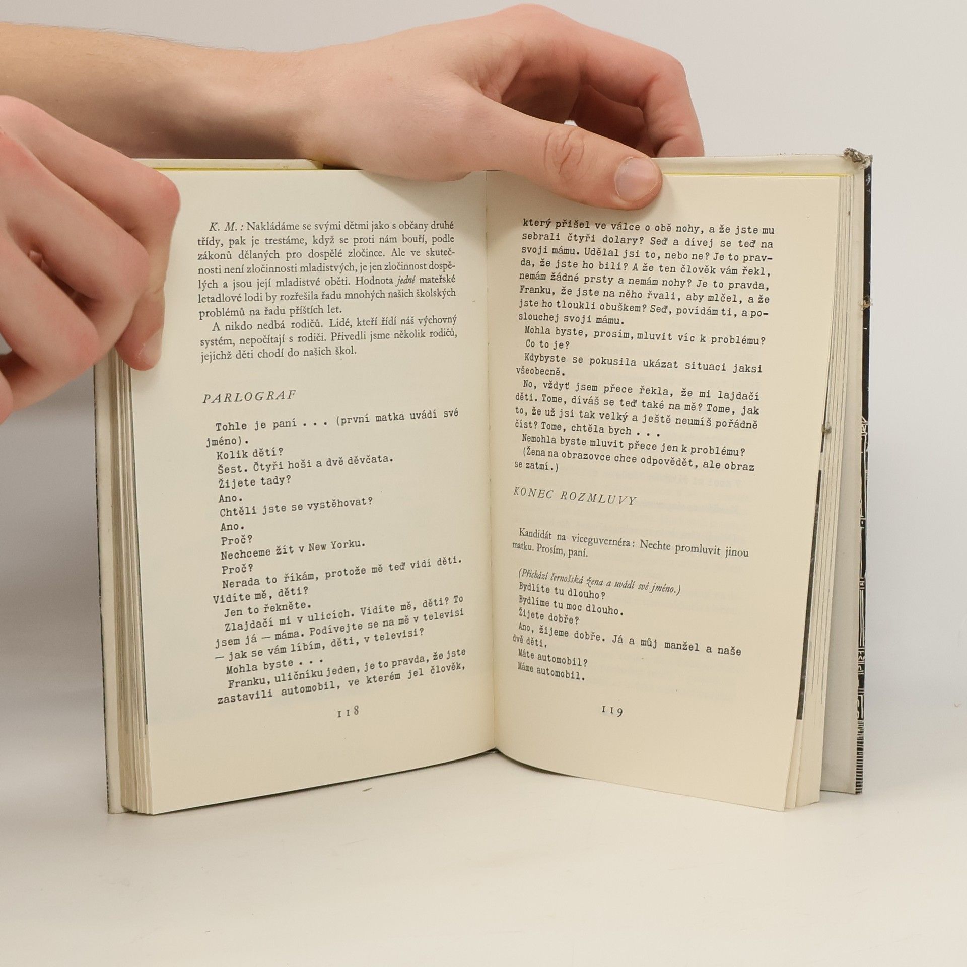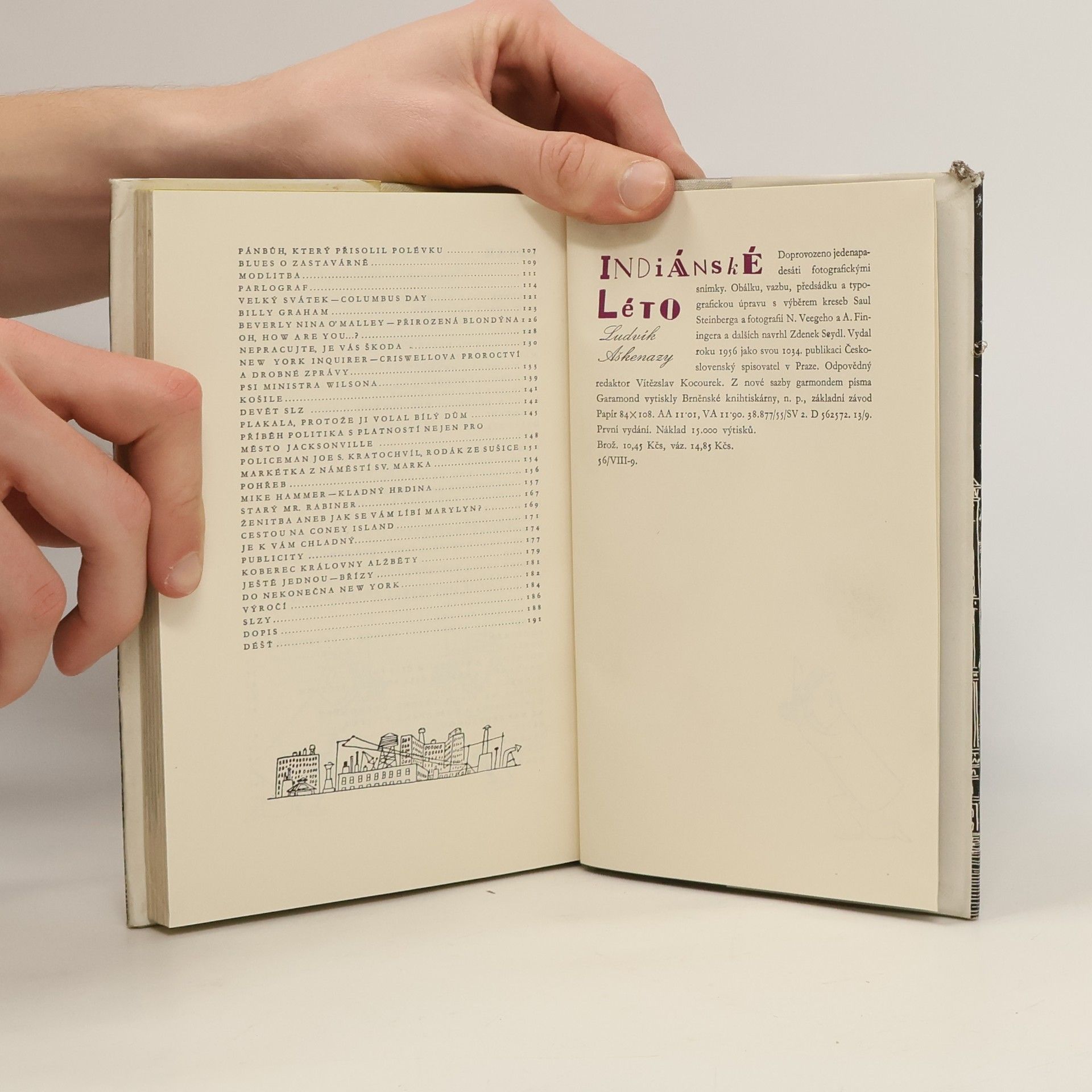 Autor v knize zachytil Ameriku dneška, jak jí poznal ze svého tříměsíčního pobytu v New Yorku jako delegát OSN. V pestrém sledu jdou jeho reportážní obrázky z metropole, zalité neonovým světlem, ze světa kariér, moderních proroků, organisovaných citů a snů. Ale již několik set metrů odBroadwaye viděl autor temné ulice starých domů, záhadné existence, nahrbené hřbety černochů v Haarlemu. To vše je Amerika, podivná nepochopitelná - tragické mraveniště, kde slzy a smích, přepych i bída žijí vedle sebe. Doprovozeno 51 fotografiemi.