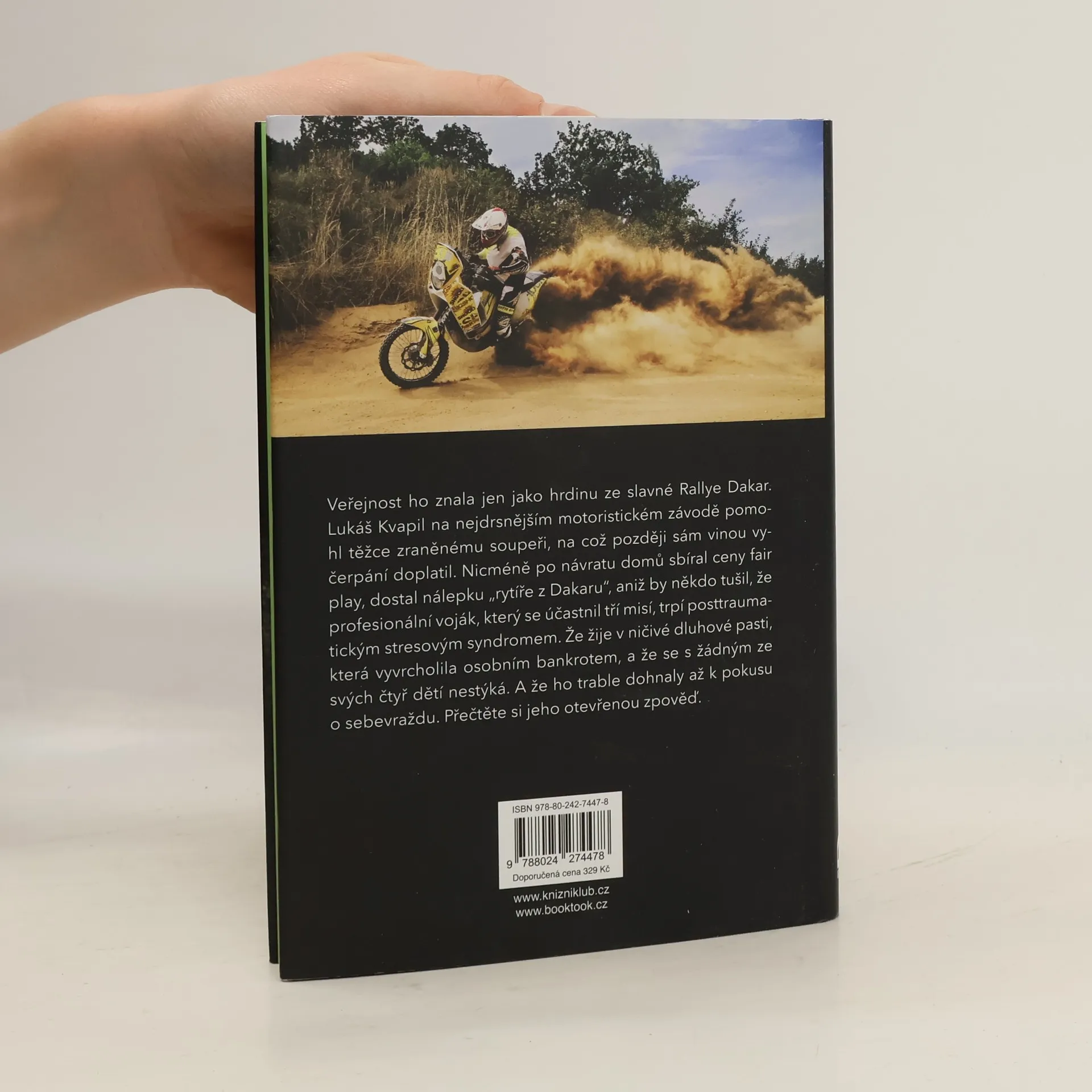 Veřejnost ho znala jen jako hrdinu ze slavné Rallye Dakar. Lukáš Kvapil na nejdrsnějším motoristickém závodě pomohl těžce zraněnému soupeři, na což později sám vinou vyčerpání doplatil. Nicméně po návratu domů sbíral ceny fair play, dostal nálepku „Rytíře z Dakaru“, aniž by někdo tušil, že profesionální voják, který se účastnil tří misí, trpí posttraumatickým stresovým syndromem. Že žije v ničivé dluhové pasti, která vyvrcholila osobním bankrotem, a že se s žádným ze svých čtyř dětí nestýká. A že ho trable dohnaly až k pokusu o sebevraždu. Přečtěte si jeho otevřenou zpověď.