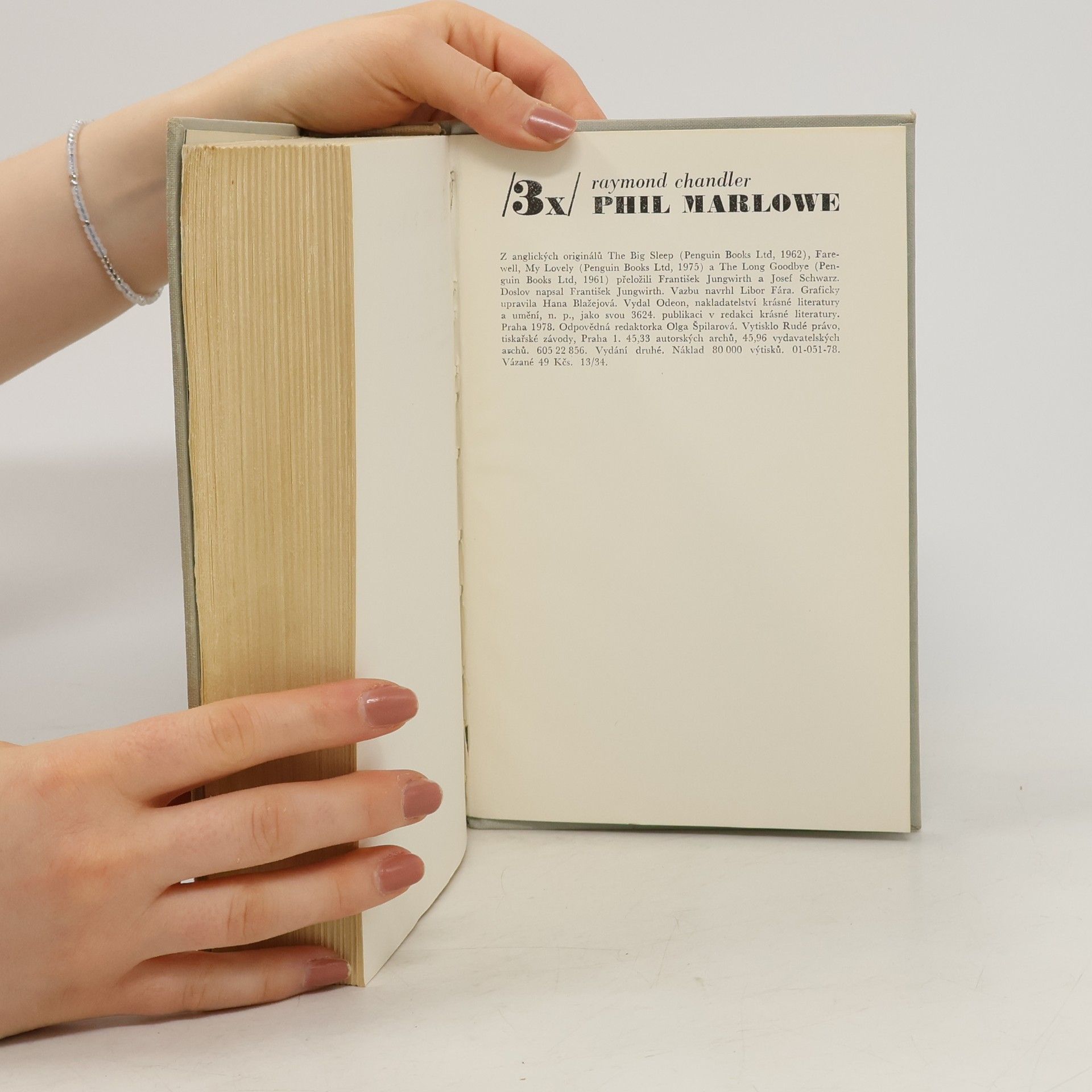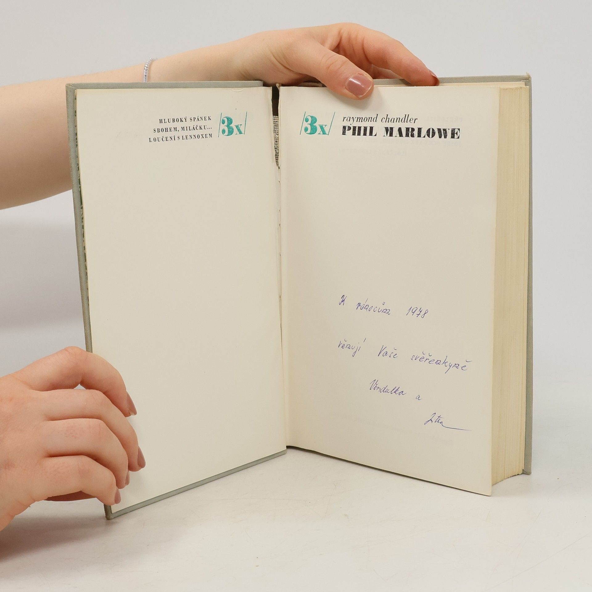 Tento svazek obsahuje díla vydaná samostatně: Hluboký spánek (The big sleep, 1939), Loučení s Lennoxem (The long goodbye, 1954), Sbohem buď, lásko má (Farewell, my lovely, 1940). Tři detektivky napsané zakladatelem americké drsné školy, nejvýznamnějším zástupcem tzv. Hard-boiled fiction. Z anglických originálů The Big Sleep (Penguin Books, 1962), Farewell, My Lovely (Penguin Books, 1961), The Long Good-Bye (Penguin Books, 1961) přeložili František Jungwirth (Hluboký spánek), Heda Kovályová (Sbohem buď, lásko má) a Josef Schwarz (Loučení s Lennoxem). Doslov (Raymond Chandler a souvislosti „drsné školy“) napsal Josef Škvorecký. Vydání první.