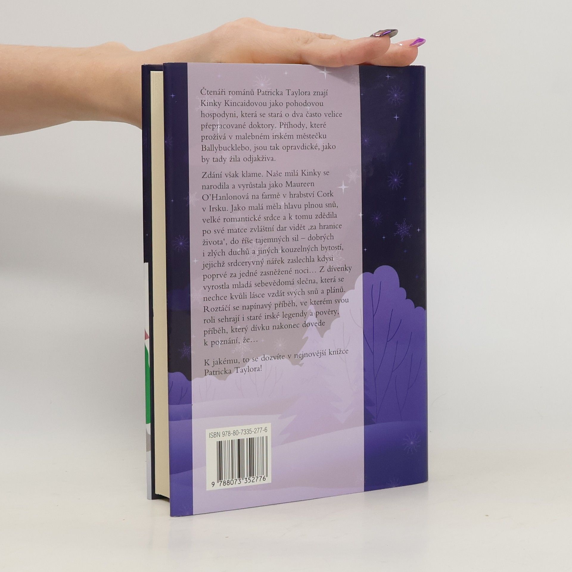 Čtenáři románů Patricka Taylora znají Kinky Kincaidovou jako pohodovou hospodyni, která se stará o dva často velice přepracované doktory. Příhody, které prožívá v malebném irském městečku Ballybucklebo, jsou tak opravdické, jako by tady žila odjakživa. Zdání však klame. Naše milá Kinky se narodila a vyrůstala jako Maureen O'Hanlonová na farmě v hrabství Cork v Irsku. Jako malá měla hlavu plnou snů, velké romantické srdce a k tomu zdědila po své matce zvláštní dar vidět, za hranice života', do říše tajemných sil - dobrých i zlých duchů a jiných kouzelných bytostí, jejichž srdceryvný nářek zaslechla kdysi poprvé za jedné zasněžené noci. Z dívenky vyrostla mladá sebevědomá slečna, která se nechce kvůli lásce vzdát svých snů a plánů. Roztáčí se napínavý příběh, ve kterém svou roli sehrají i staré irské legendy a pověry, příběh, který dívku nakonec dovede k poznání, že...