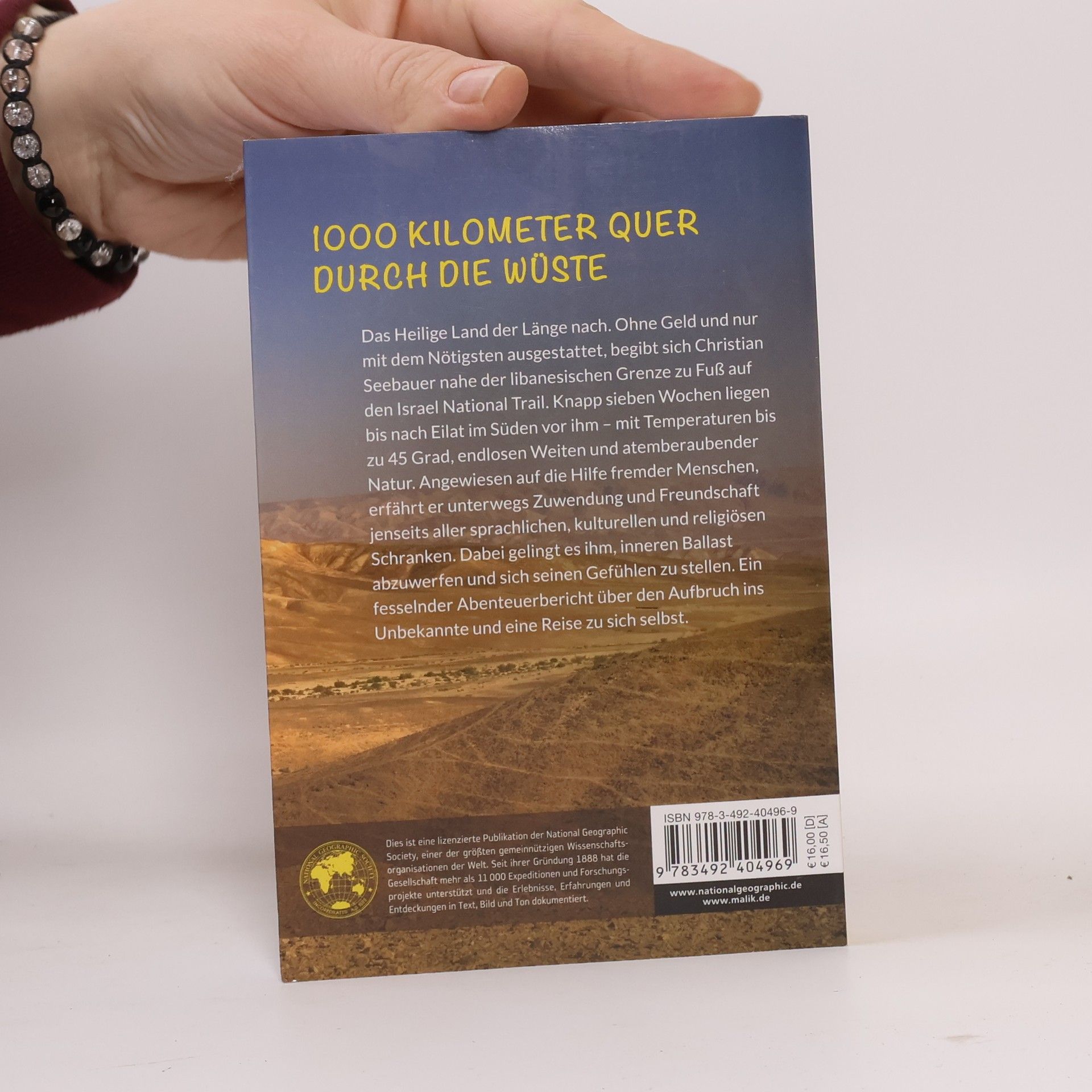 Das Heilige Land der Länge nach. Ohne Geld und nur mit dem Nötigsten ausgestattet, begibt sich Christian Seebauer nahe der libanesischen Grenze zu Fuß auf den Israel National Trail. Knapp sieben Wochen liegen bis nach Eilat im Süden vor ihm – mit Temperaturen bis zu 45 Grad, endlosen Weiten und atemberaubender Natur. Angewiesen auf die Hilfe fremder Menschen, erfährt er unterwegs Zuwendung und Freundschaft jenseits aller sprachlichen, kulturellen und religiösen Schranken. Getragen von Nächstenliebe, wirft er inneren Ballast ab und kann sich seinen Gefühlen stellen. Ein fesselnder Abenteuerbericht über den Aufbruch ins Unbekannte und eine Reise zu sich selbst.