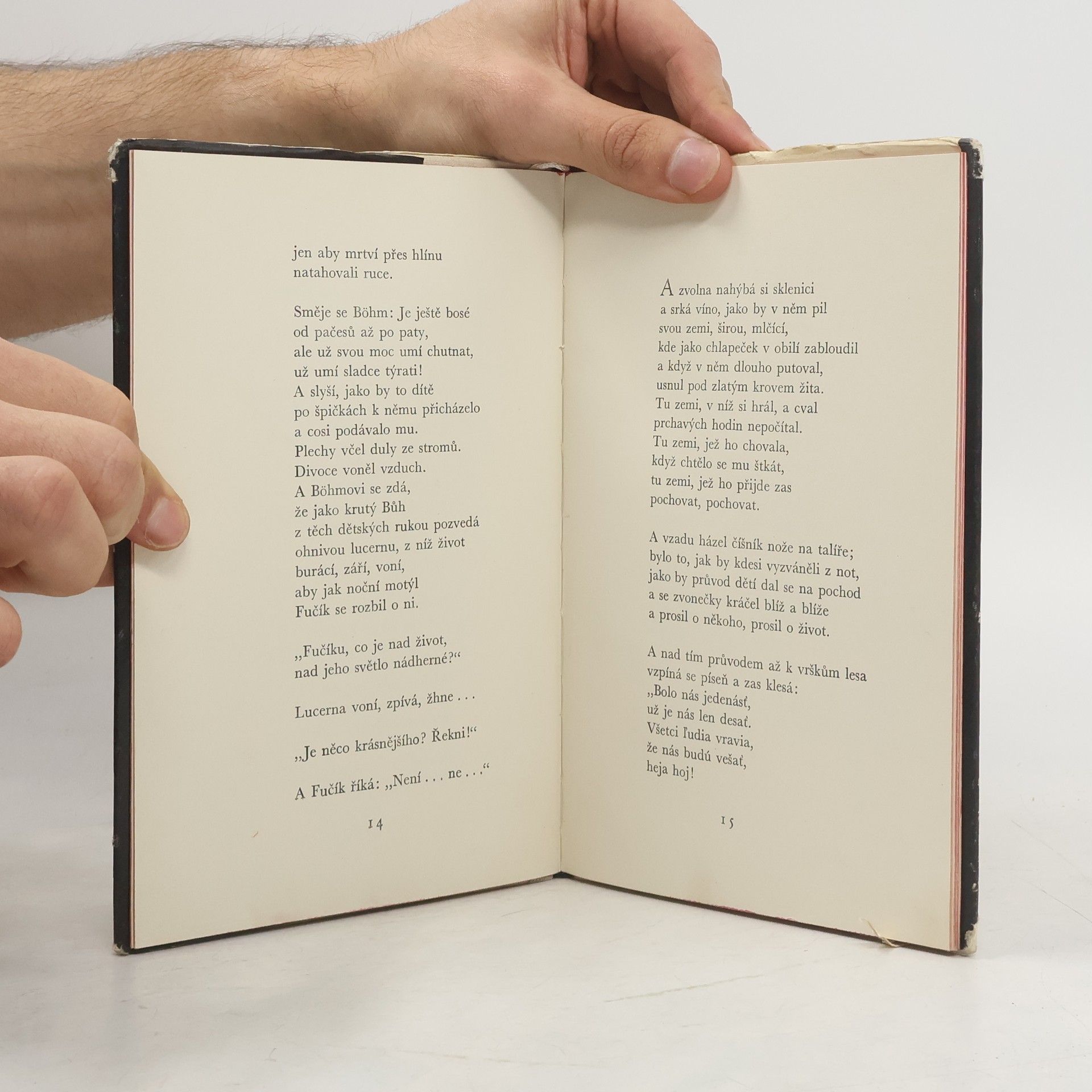Rozlehlá poéma o Juliu Fučíkovi, jejž gestapák Böhm uprostřed jarem rozkvetlého Petřína a tváří v tvář kráse Prahy marně svádí k zradě idejí komunismu a národa.