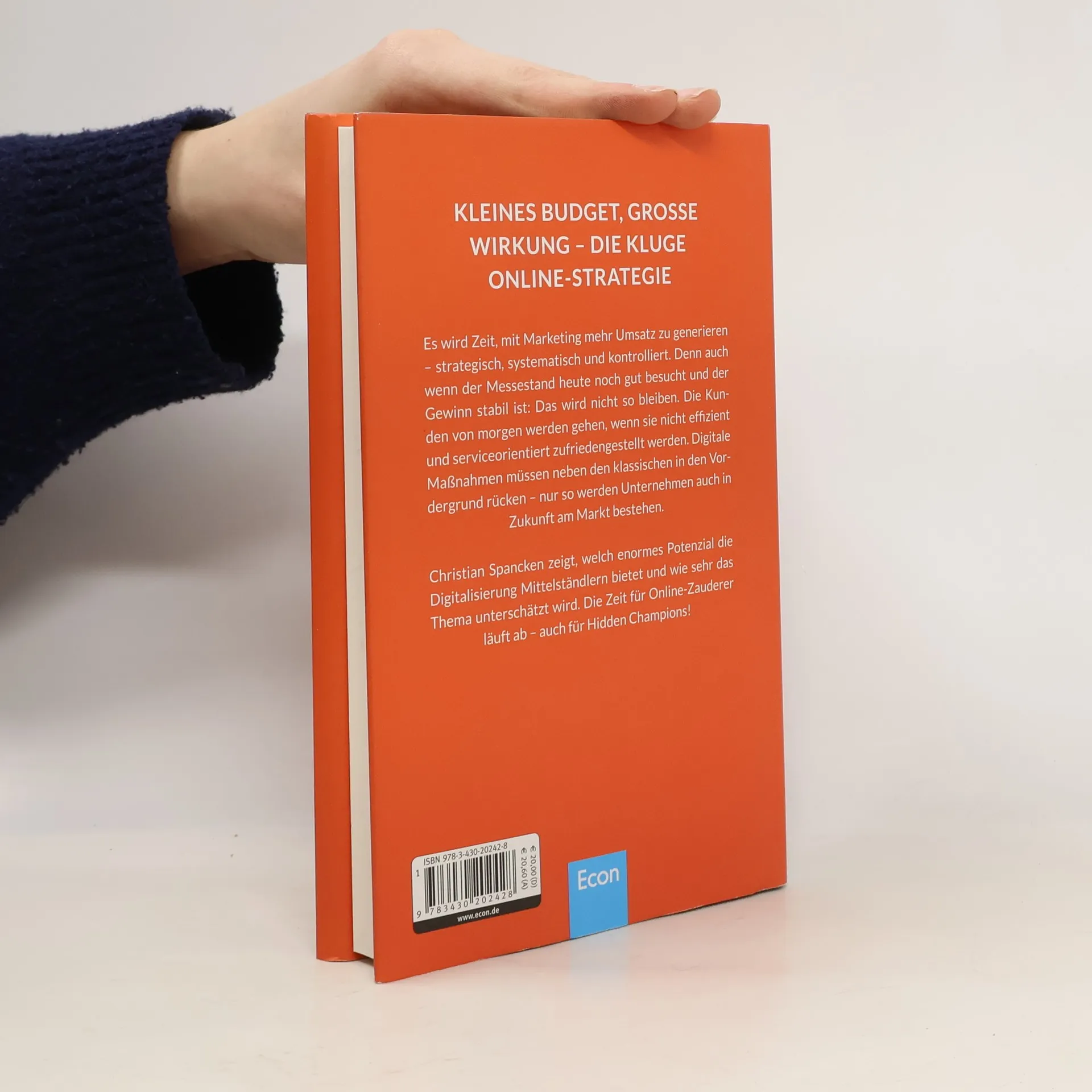 Kleines Budget, große Wirkung – die kluge Online-Strategie Wer als Unternehmer im Netz heute nicht sichtbar ist, geht unter. Im Geschäft mit Endkunden bezweifelt das niemand mehr: kein Händler ohne Webshop, kein Modeunternehmen ohne Digitalstrategie, kein Restaurant ohne Homepage. Im Mittelstand und im B2B-Bereich dagegen wiegen sich viele Unternehmer noch immer in falscher Sicherheit. Christian Spancken zeigt, wie sehr das Thema noch unterschätzt wird und welch großes Potential für den Mittelstand in der Digitalisierung liegt. Der Autor nimmt Unternehmern und Marketingverantwortlichen die Ängste und zeigt in diesem ersten praxisnahen Buch echte Chancen im B2B-Online-Marketing auf. Die Zeit für Online-Verweigerer läuft ab - die Uhr tickt auch für „Hidden Champions“! Aus dem Inhalt: • Warum eine Internetseite nicht bedeutet, dass Sie digital aufgestellt sind • Warum eine Online-Strategie viel mehr ist als „im Netz gefunden werden“ • Warum Ihr Azubi nicht die Idealbesetzung für Internetfragen ist • Die richtige Strategie: Kleines Budget, große Wirkung • Warum Sie keine teure Marktforschung mehr brauchen • Best Practice: Online Erfolge