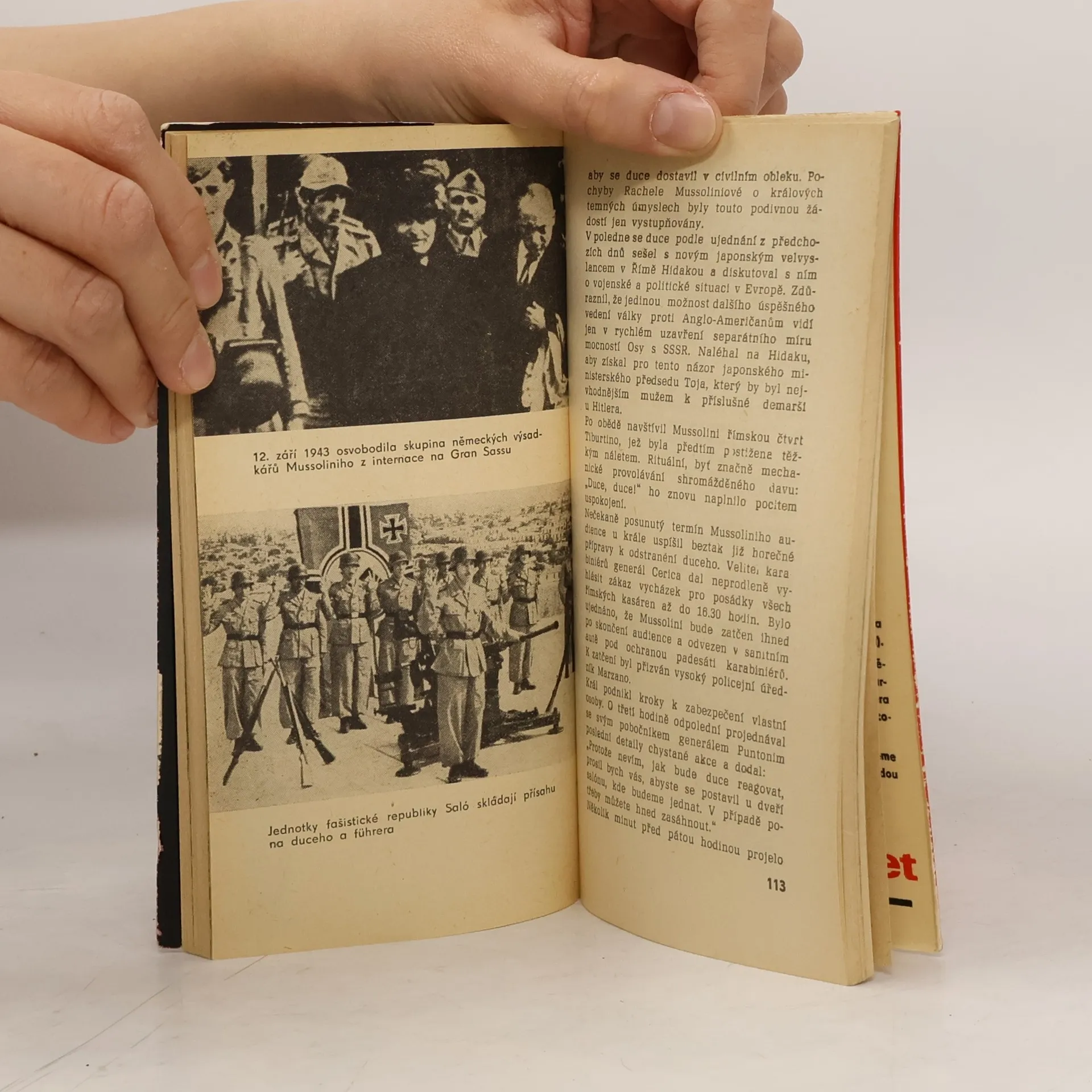 Hlavní část reportáže líčí vzestup a pád diktátora Mussoliniho. Dvojí zajetí, jeho únos německými výsadkáři, převrat v Římě, revoluce v zemi, poslední týdny fašistické republiky, až k výstřelům samopalu, který jménem Výboru národního osvobození účtuje dne 28.4.1945 s diktátorem.