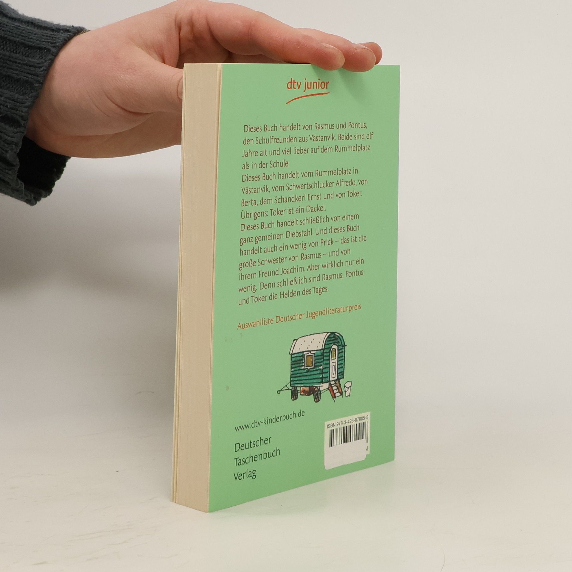 Dieses Buch handelt von Rasmus und Pontus, den Schulfreunden aus Västanvik. Beide sind elf Jahre alt und viel lieber auf dem Rummelplatz als in der Schule. Dieses Buch handelt vom Rummelplatz in Västanvik, vom Schwertschlucker Alfredo, von Berta, dem Schandkerl Ernst und von Toker. Übrigens: Toker ist ein Dackel. Dieses Buch handelt schließlich von einem ganz gemeinen Diebstahl. Und dieses Buch handelt auch ein wenig von Prick - das ist die große Schwester von Rasmus - und von ihrem Freund Joachim. Aber wirklich nur ein wenig. Denn schließlich sind Rasmus, Pontus und Toker die Helden des Tages. Auswahlliste Deutscher Jugendliteraturpreis