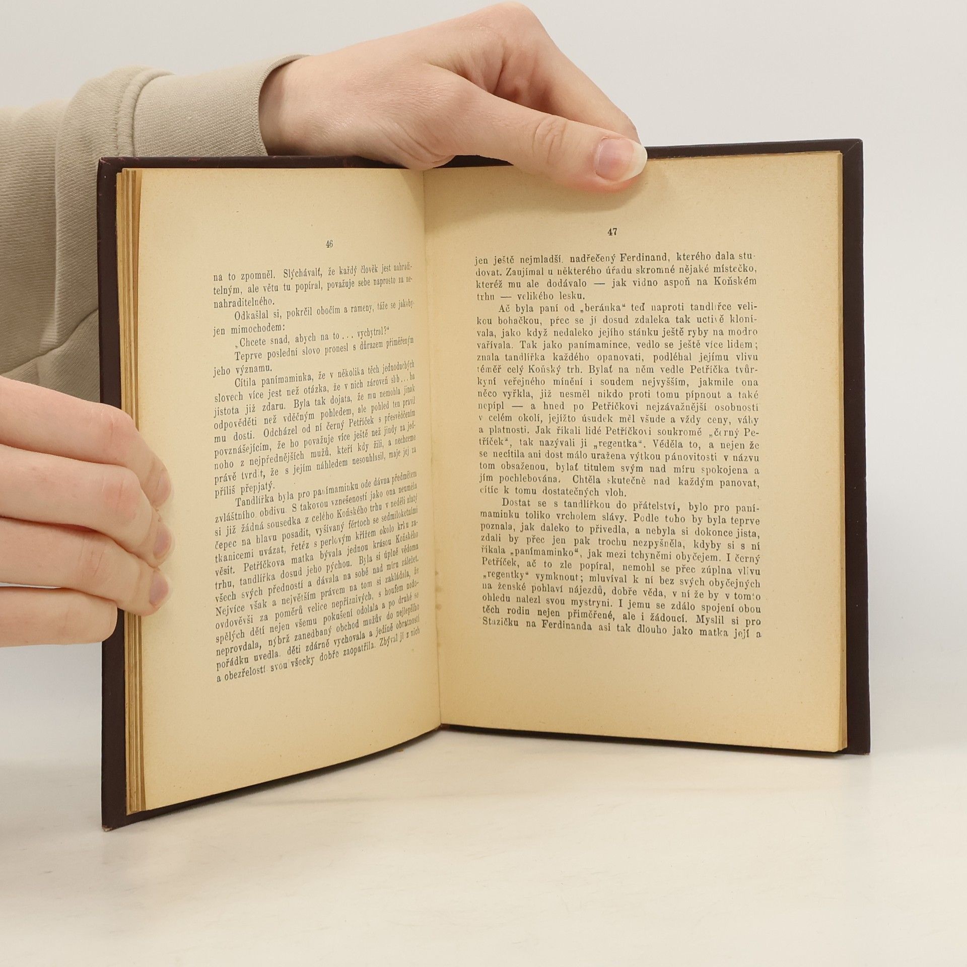 Autorka v románu líčí staropražský život obchodníka na trhu.