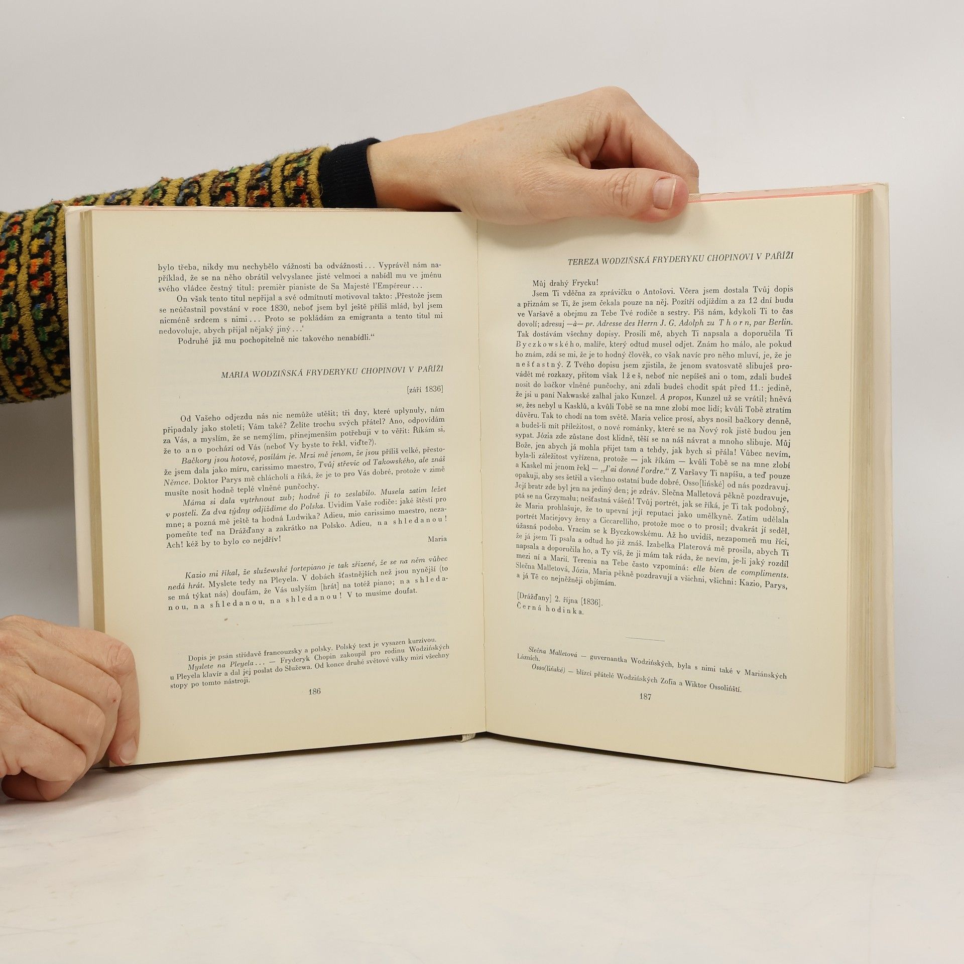 Výbor z korespondence polského skladatele, doplněný dopisy osob, jež jej důvěrně znaly. Ve svém úhrnu je to značně podrobný a zajímavý skladatelův životopis, psaný z největší části jím samým. Každý z listů je opatřen vysvětlivkami a kniha doplněna přehledem základních dat a skutečností Chopinova života a díla 32 stránek fotografické přílohy