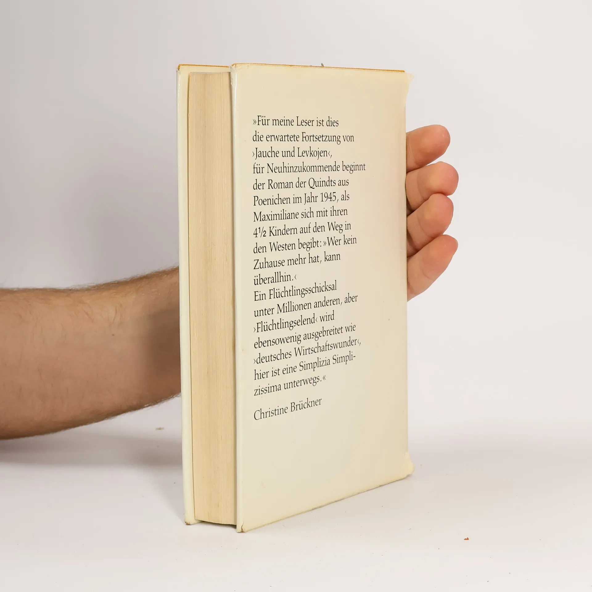 Wer kein Zuhause mehr hat, kann überallhin', erklärt Maximiliane von Quindt aus Poeninchen in Hinterpommern und macht sich mit ihren viereinhalb Kindern auf den Weg in den Westen, eine unter Millionen Vertriebenen. Aus einer Kriegswaise des Ersten Weltkriegs ist eine Kriegerwitwe des Zweiten Weltkriegs geworden. Doch im Gegensatz zu anderen Flüchtlingen wird Maximiliane nicht wieder sesshaft. Allen Prophezeiungen zum Trotz vergeht ihr das Lachen nicht und nicht das Singen. Sie sucht und findet, vorübergehend, Wärme in Männerarmen. Als ihre Kinder erwachsen sind, sagt sie: 'Lauft!' Um sie zu besuchen, muss sie den Globus zur Orientierung nehmen. Denn die Quindts, jahrhundertelang auf jenem fernen Poeninchen zu Hause, sind nun in alle Winde verstreut. Fast sechzigjährig fährt Maximiliane ins polnische Pommern, sitzt im verwilderten Park des einstigen Herrenhauses auf einem Säulenstumpf und 'vollzieht nachträglich und ihrerseits die Unterzeichnung der Polenverträge'. Die Speisekammer Poeninchen, aus der sie sich nährte, ist leer. Wenn sie zurückkehrt, wird auch sie sesshaft werden können. Mehr über Christine Brückner erfahren Sie über die Stiftung Brückner-Kühner unter http://www.brueckner-kuehner.de/.