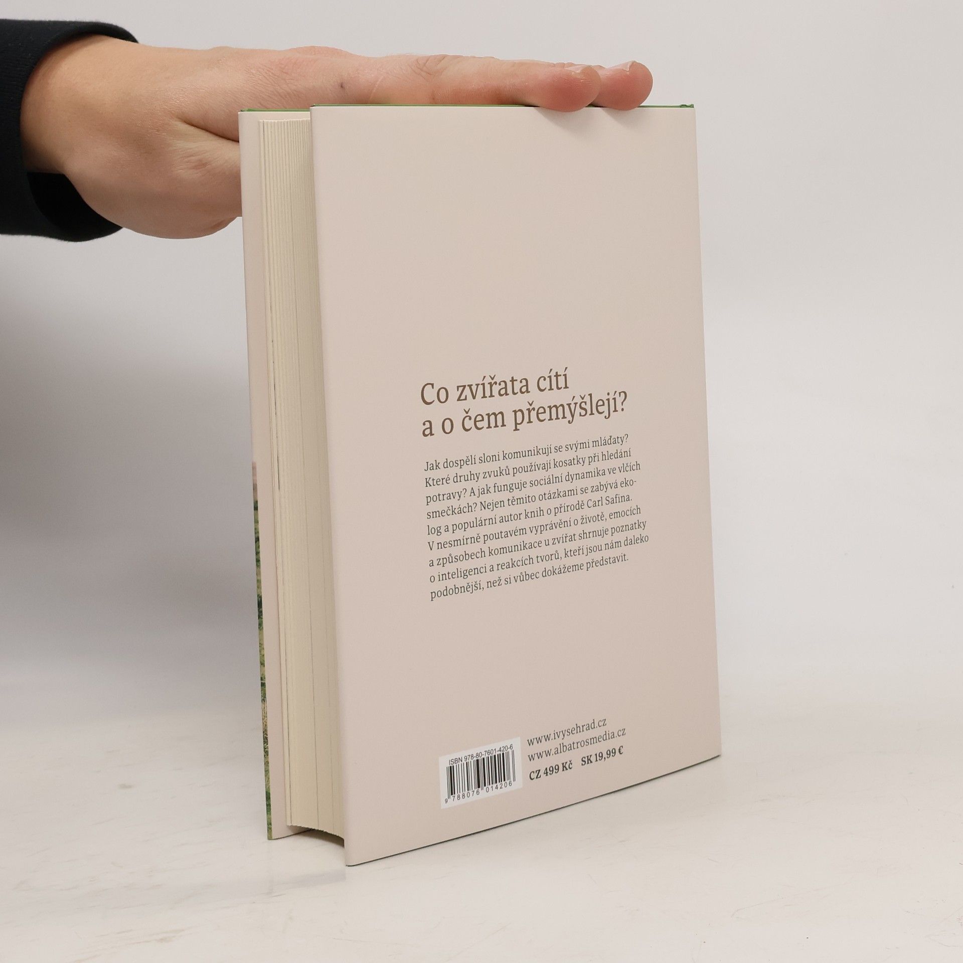 Jak dospělí sloni komunikují se svými mláďaty? Které druhy zvuků používají kosatky při hledání potravy? A jak funguje sociální dynamika ve vlčích smečkách? Nejen těmito otázkami se zabývá ekolog a populární autor knih o přírodě Carl Safina. V nesmírně poutavém vyprávění o životě, emocích a způsobech komunikace u zvířat shrnuje poznatky o inteligenci a reakcích tvorů, kteří jsou nám daleko podobnější, než si vůbec dokážeme představit.