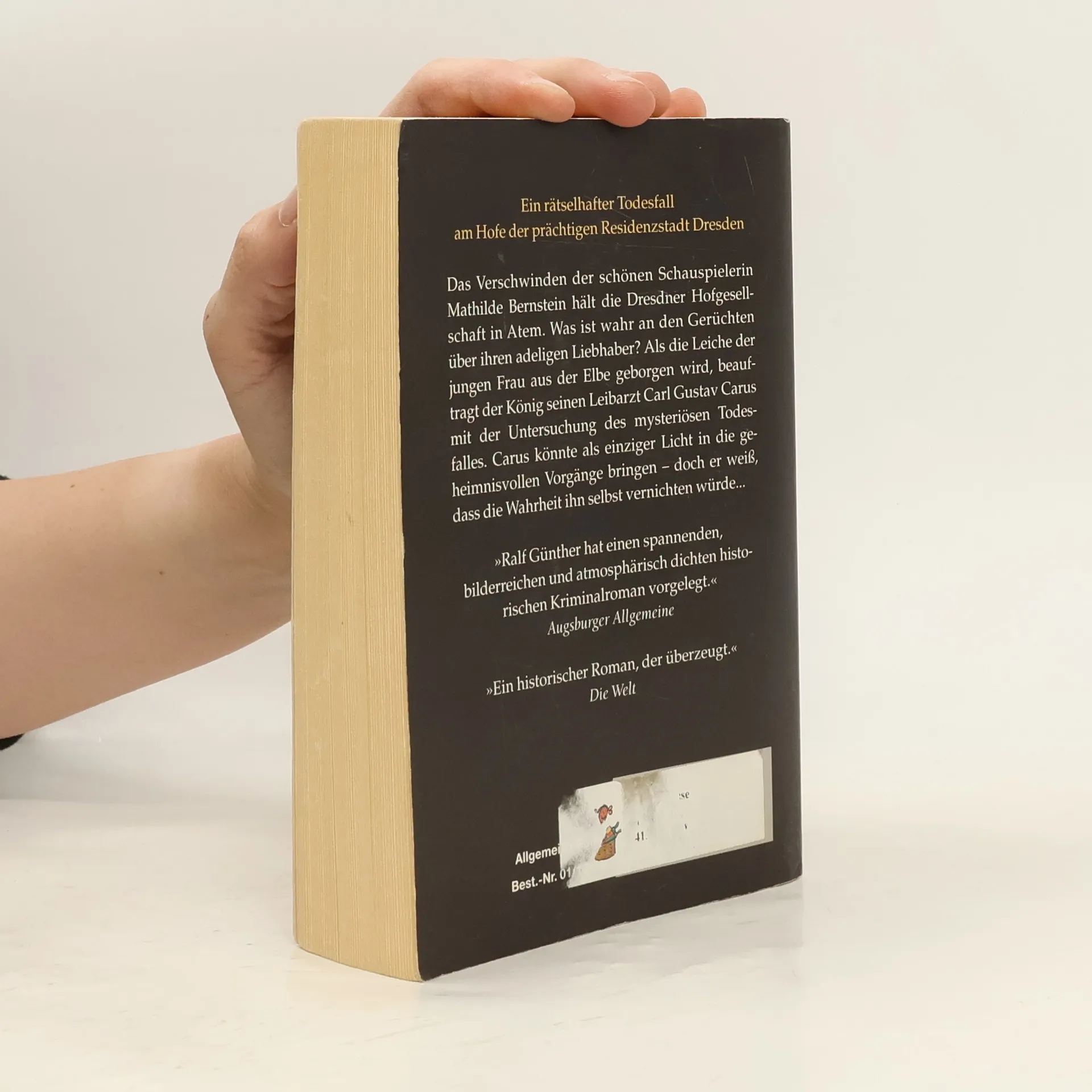 Das Verschwinden der schönen Schauspielerin Mathilde Bernstein hält die Dresdner Hofgesellschaft in Atem. Nur der Leibarzt des Königs ahnt die Zusammenhänge - doch er weiß, dass die Wahrheit ihn selbst vernichten würde. „Ralf Günther hat einen spannenden, bilderreichen und atmosphärisch dichten Kriminalroman vorgelegt.“ Augsburger Allgemeine „Ein historischer Roman, der überzeugt.“ Die Welt „Ralf Günther hat eine kleine Sensation geschaffen.“ Neue Westfälische