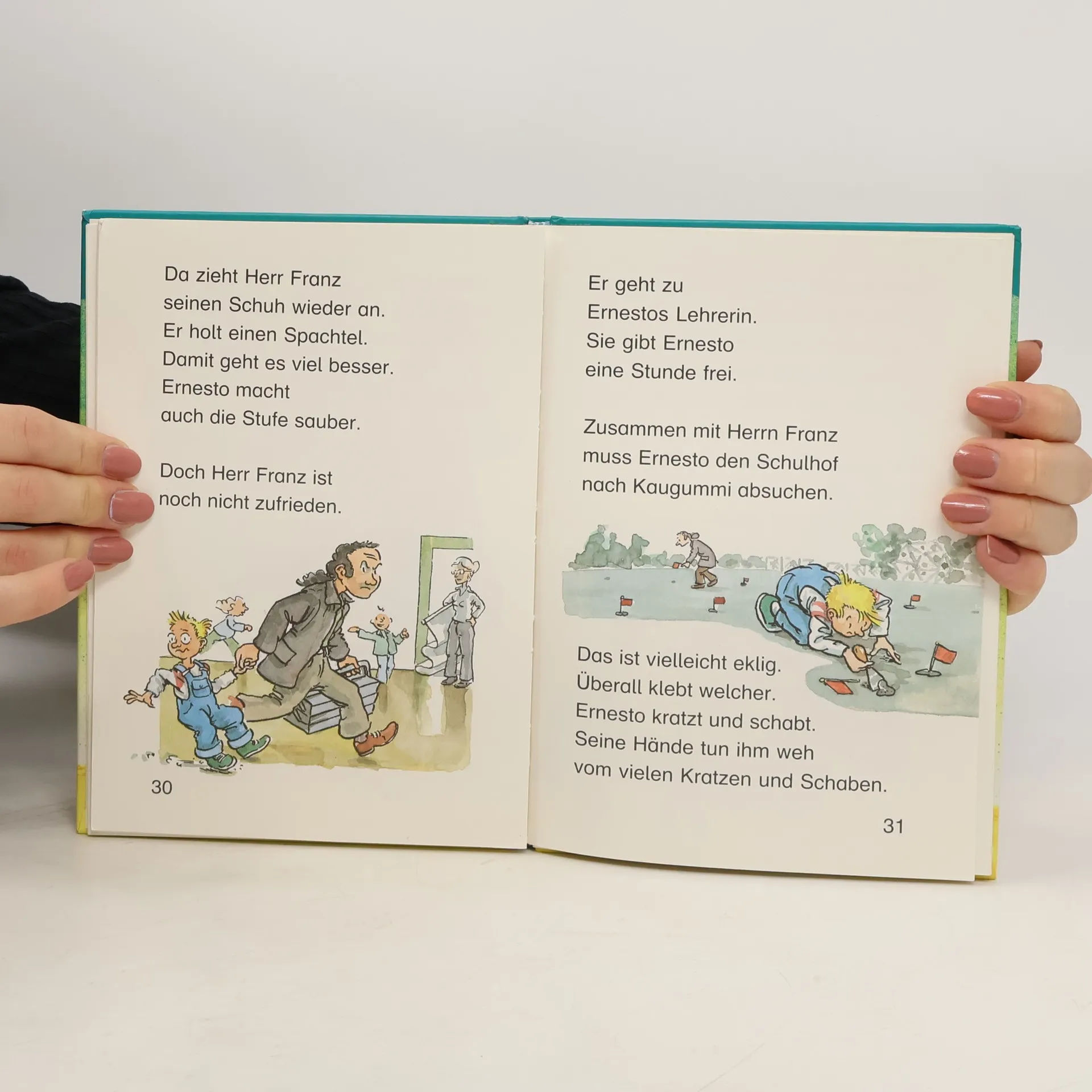 Heitere Geschichten über Julia, die neu in der Klasse ist oder den Hausmeister, der Kaugummi nicht leiden kann.