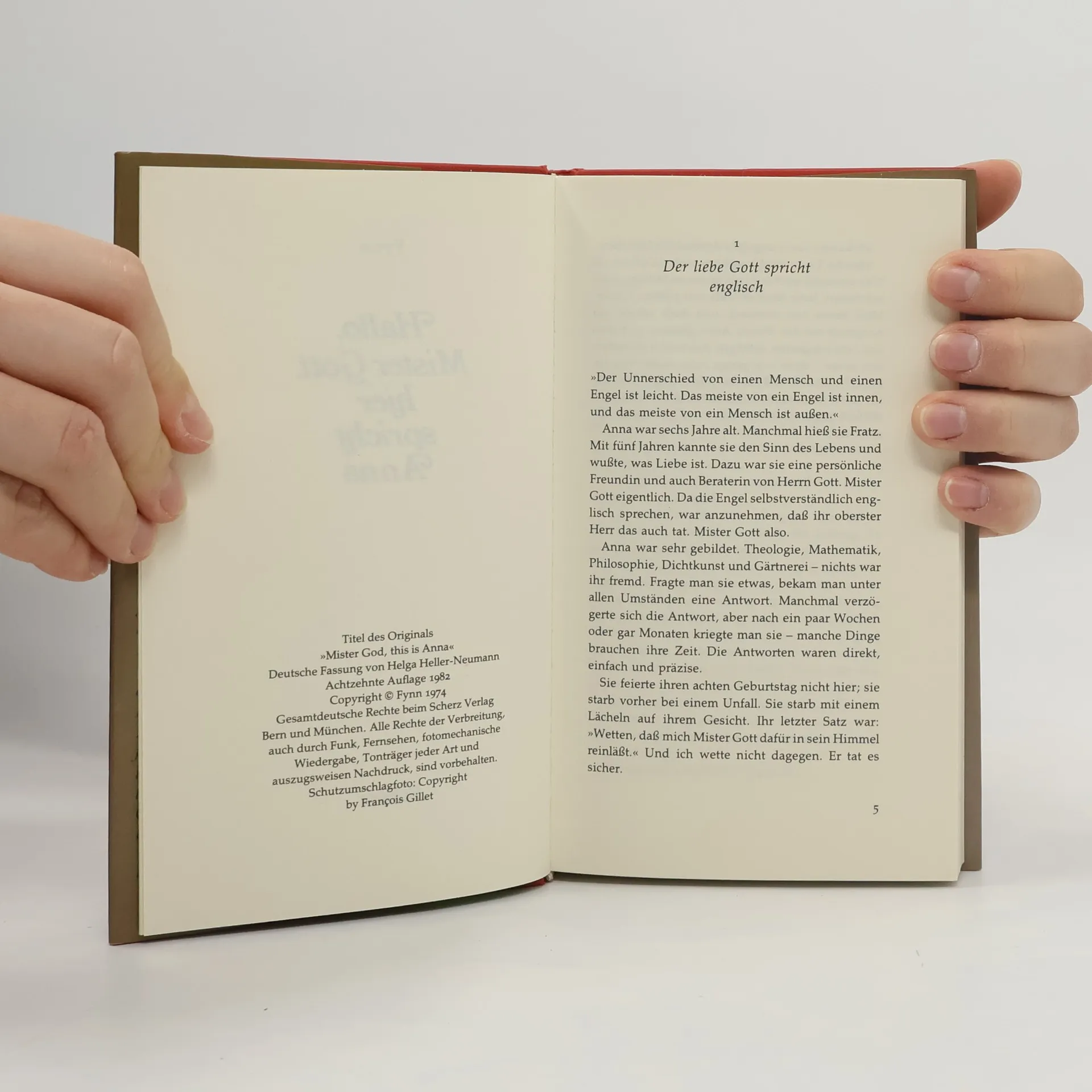 "Mister Gott muss sich manchmal ganz klein machen, sonst weiss er doch überhaupt nicht, wie ein Marienkäfer lebt – oder?" Diese Frage stellt Anna, als sie fünf Jahre alt ist, ein Jahr nach ihrer Begegnung mit Fynn, der sie als Strandgut in den Londoner Docks aufgelesen hat. Drei Jahre lang sind die beiden unzertrennlich, und Anna erklärt Fynn die Welt, die Menschen und die Facetten von Liebe, Freude, Angst und Trauer. In dieser Zeit entdecken sie gemeinsam mehr als viele Menschen in ihrem ganzen Leben. Anna, das 'Geschenk auf zwei Beinen', hinterfragt alles und deckt die Heuchelei der Erwachsenen auf. Mit ihrem Röntgenblick für falsche Gefühle und ihrem unermüdlichen Drang, die Wahrheit zu ergründen, bringt sie Licht in Fynns Leben. Ihre bedingungslose Liebe und die Zuneigung, die sie von anderen erhält, machen sie zu einer einzigartigen Figur. Die Geschichte von Anna ist eine ergreifende Erzählung, die Menschen, die den Kontakt zur Liebe verloren haben, aufrüttelt. Als Anna eines Tages von einem Baum stürzt, sagt sie zu Fynn: "Wetten, dass mich Mister Gott dafür in sein Himmel reinlässt?" Fynn weiß, dass Anna immer recht hat. Eine Anna gibt es nur selten, und ihre Präsenz würde die Welt zweifellos verbessern. "Anna kann man nur mit Saint-Exupérys ›Der kleine Prinz‹ vergleichen."