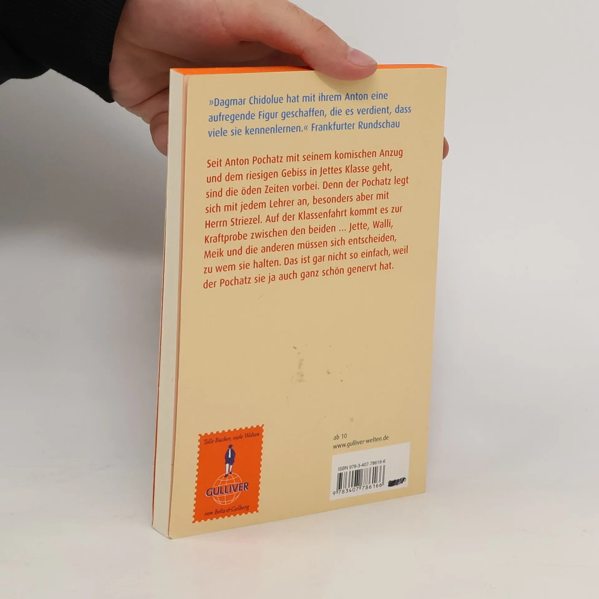 Seit Anton Pochatz mit seinem komischen Anzug und dem riesigen Gebiss, das er direkt von den Dinosauriern geerbt zu haben scheint, in ihre Klasse geht, sind die öden Zeiten vorbei. Der Pochatz legt sich ständig mit den Lehrern an, ganz besonders aber mit Herrn Striezel. Auf der Klassenreise kommt es zur Kraftprobe zwischen den beiden. Sie endet in einer Katastrophe, und die anderen müssen sich entscheiden, zu wem sie halten. Das ist gar nicht einfach, weil der Pochatz sie ja auch ganz schön genervt hat ...