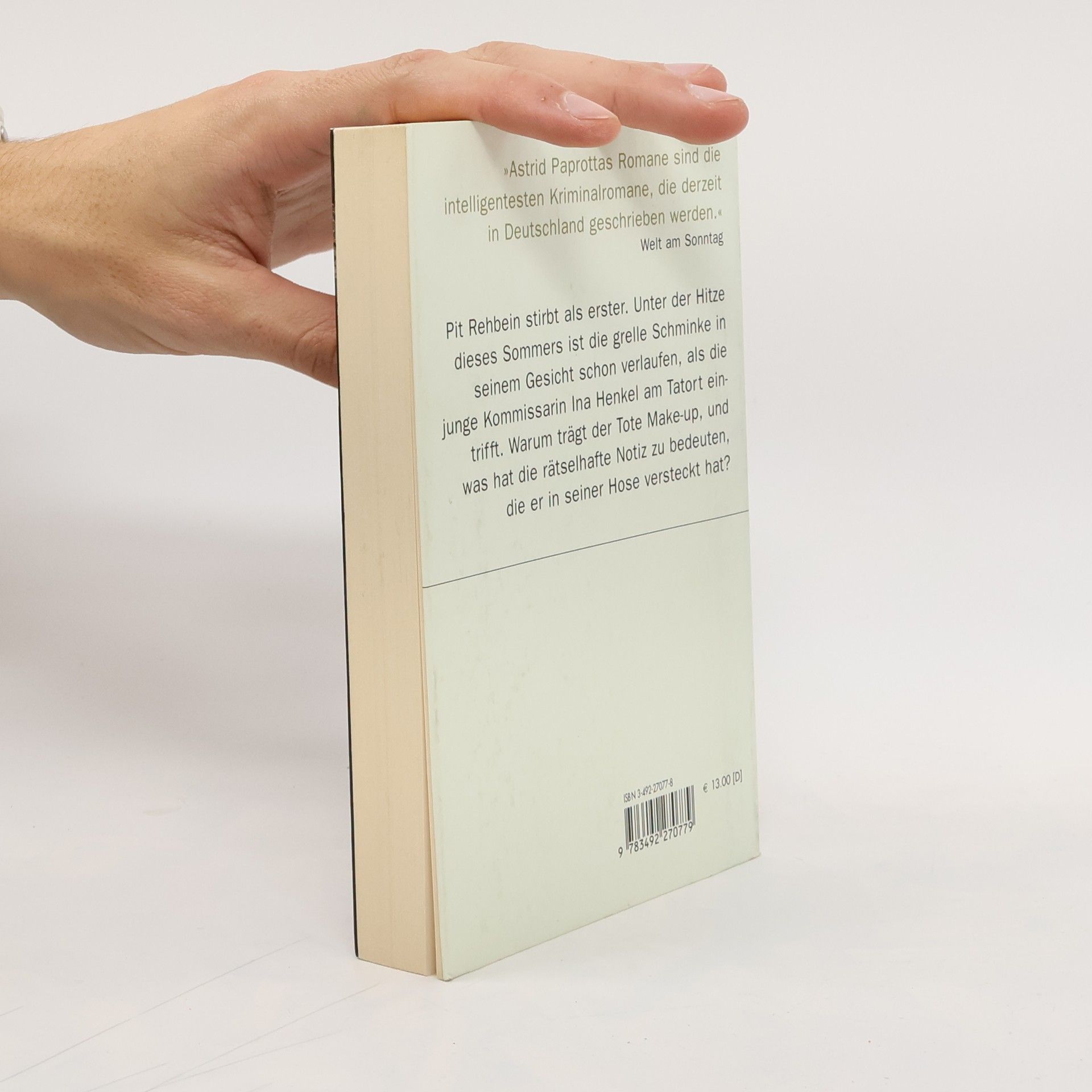Pit Rehbein stirbt als erster. Unter der Hitze dieses Sommers ist die grelle Schminke in seinem Gesicht schon verlaufen, als die junge Kommissarin Ina Henkel am Tatort eintrifft. Warum trägt der Tote im Frankfurter Ostpark Make-up, und was hat die rätselhafte Notiz zu bedeuten, die sie in seiner Hose findet? Astrid Paprotta, die 'in Deutschland die intelligentesten Kriminalromane' (Die Welt) schreibt, schickt Kommissarin Ina Henkel in ihren dritten Fall. 'Astrid Paprotta ist eine deutsche Nachfolgerin der großen Patricia Highsmith.' Die Zeit