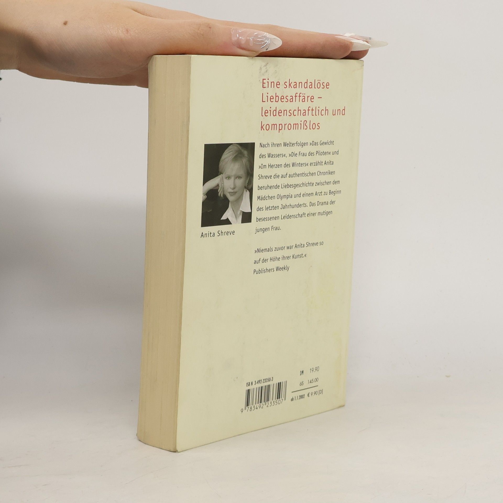 Anita Shreve gehört seit ihrem Bestseller 'Die Frau des Piloten' zu den amerikanischen Top-Autoren. In ihrem neuen Roman 'Olympia', den sie selbst als ihren wichtigsten bezeichnet, erzählt sie auf der Basis historischer Ereignisse eine skandalöse Liebesgeschichte aus der Zeit um 1900. Die fünfzehnjährige Olympia verliebt sich in den einundvierzigjährigen Arzt und Familienvater John Haskell. Eine leidenschaftliche Affäre beginnt, die sich dramatisch zuspitzt, als die Beziehung ans Licht kommt und Olympia entdeckt, daß sie schwanger ist. Die junge Frau steht mutig zu ihrer Liebe jenseits aller Konventionen.