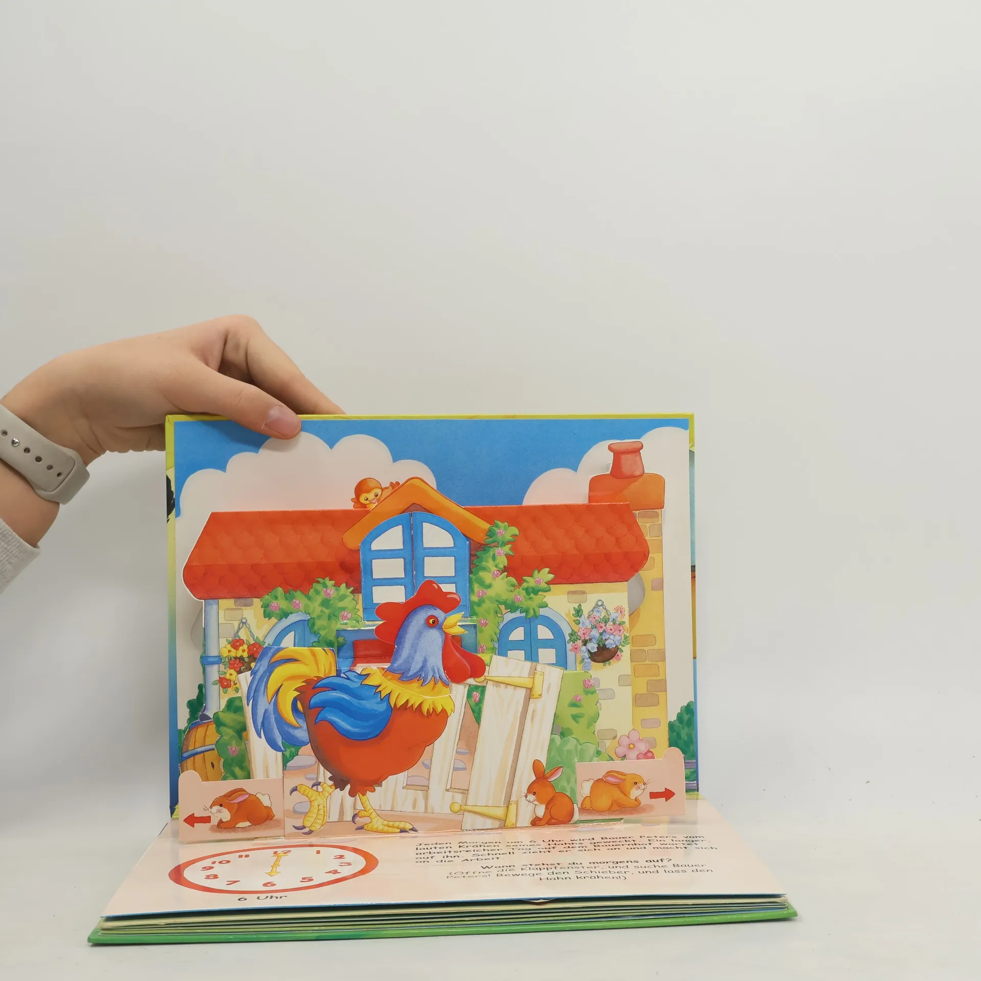 Dieses Aufklappbuch macht mit der Uhrzeit bekannt. Anhand des Tagesablaufs auf dem Bauernhof wird die Uhrzeit anschaulich vermittelt. Die liebevollen Illustrationen werden durch Klappen und Schieben noch lebendiger.