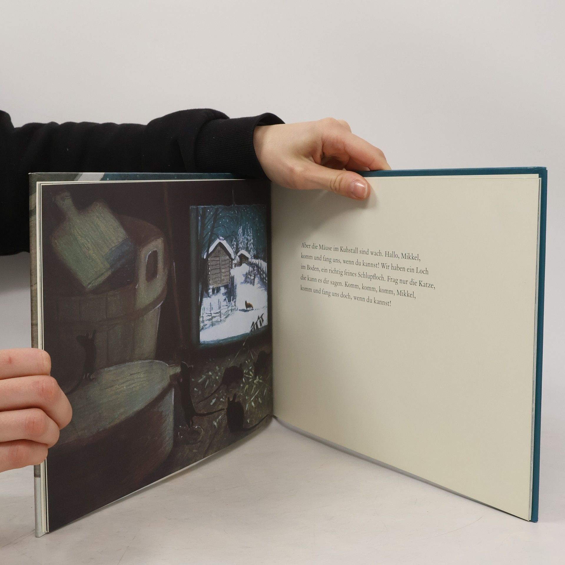 Wenn es Nacht wird und alle schlafen, kommt Tomte Tummetott aus seinem Versteck hervor. Der kleine Wichtel mit dem langen weißen Bart und der roten Mütze beschützt die Menschen und Tiere. Doch in dieser Winternacht schleicht Mikkel, der hungrige Fuchs, über den Hof. Aber Tomte hat eine Idee …