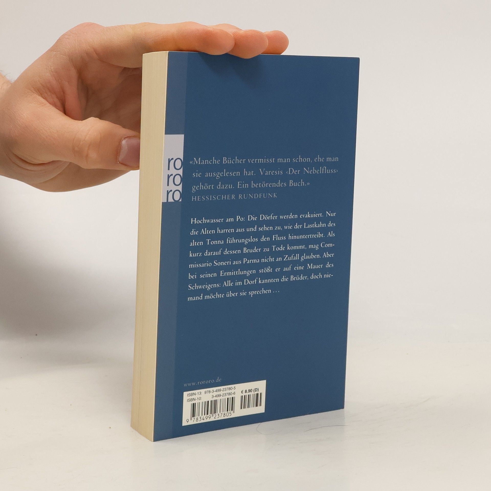 „Manche Bücher vermisst man schon, ehe man sie ausgelesen hat. Varesis DER NEBELFLUSS gehört dazu. Ein betörendes Buch.“ (Hessischer Rundfunk)Hochwasser am Po: Die Dörfer werden evakuiert. Nur die Alten harren aus und sehen zu, wie der Lastkahn des alten Tonna führungslos den Fluss hinuntertreibt. Als kurz darauf dessen Bruder zu Tode kommt, mag Commissario Soneri aus Parma nicht an Zufall glauben. Aber bei seinen Ermittlungen stößt er auf eine Mauer des Schweigens: Alle im Dorf kannten die Brüder, doch niemand möchte über sie sprechen …