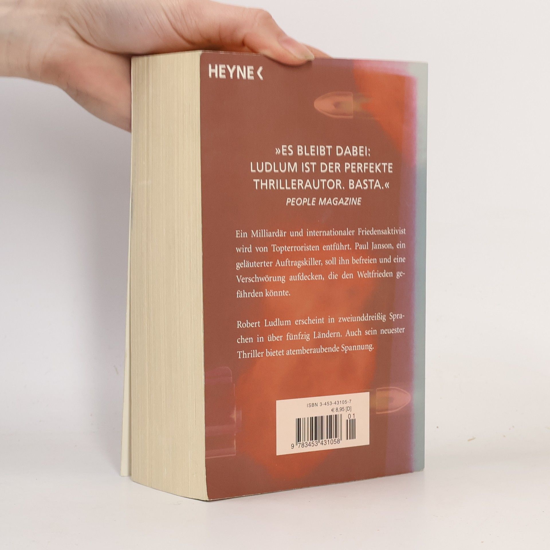 Ein Milliardär und internationaler Friedensaktivist wird von Topterroristen entführt. Paul Janson, ein geläuterter Auftragskiller, soll ihn befreien und eine Verschwörung aufdecken, die den Weltfrieden gefährden könnte. Robert Ludlum erscheint in zweiunddreißig Sprachen in über fünfzig Ländern. Auch sein neuester Thriller bietet atemberaubende Spannung.