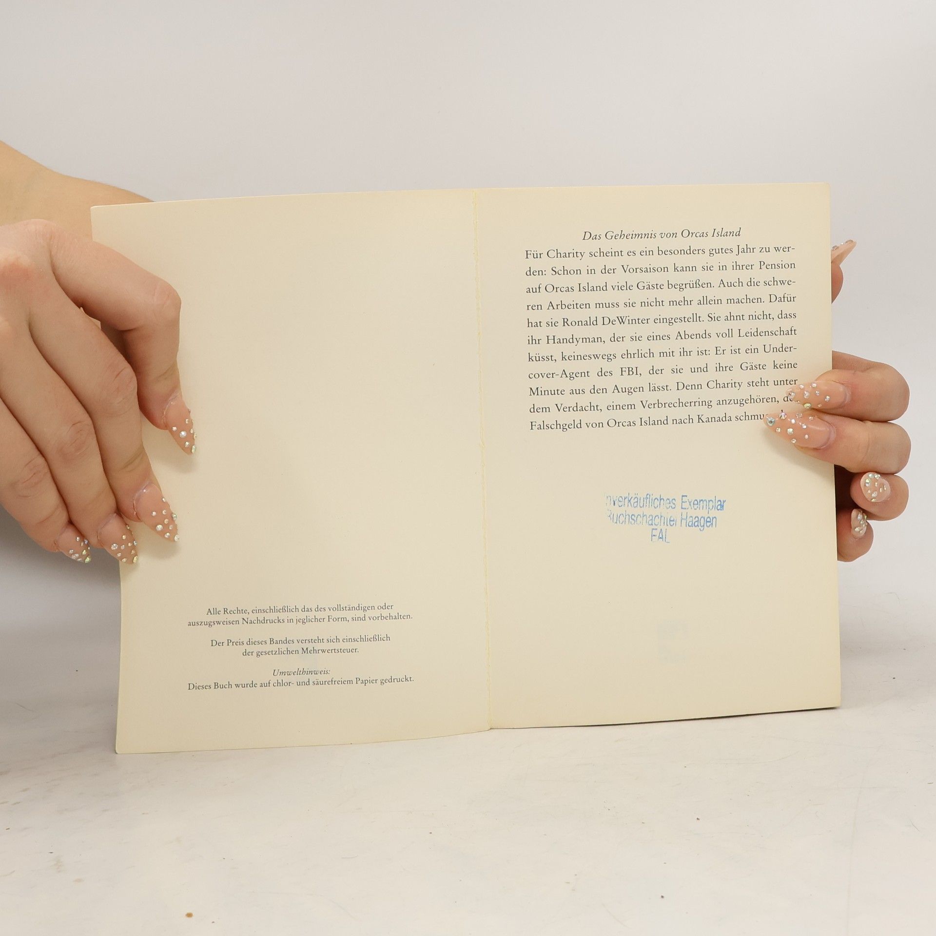 Charity Ford betreibt eine charmante Pension auf einer idyllischen Insel vor Washington State, die für Whale Watching beliebt ist. Als der mysteriöse Ronald DeWinter als Mann für alles anheuert, ist die Anziehung zwischen den beiden greifbar und bald können sie nicht mehr widerstehen. Doch die lebenslustige, symapthische Frau spürt, dass der neue Mann in ihrem Leben ihr nicht ganz vertrauen kann. Sie weiß nicht, dass er undercover für das FBI ermittelt. Er weiß nicht: Könnte sie in üble Machenschaften verwickelt sein?