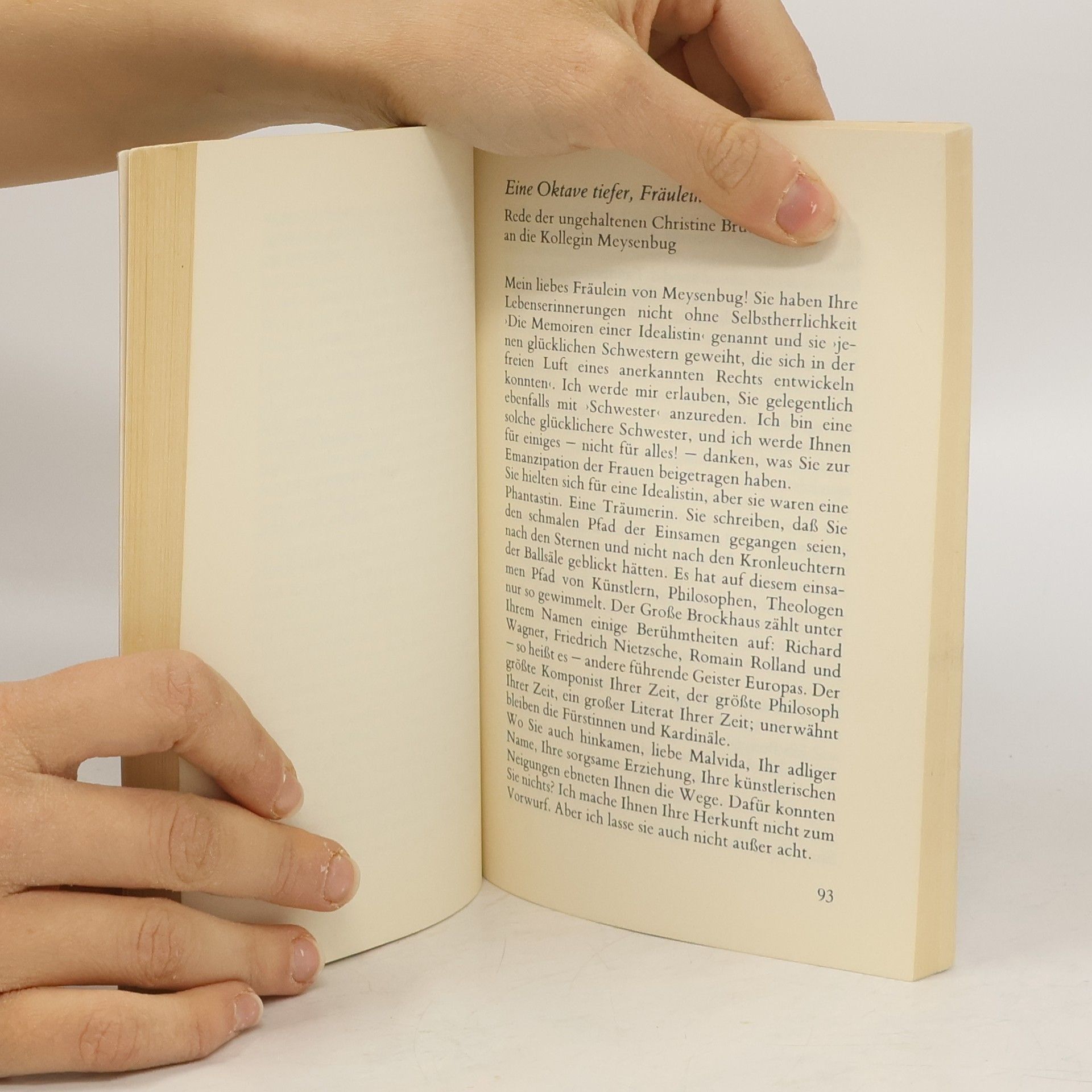 Christine Brückner, bekannt für ihre Poenichen-Romane, ist unzufrieden mit der kulturellen Ungerechtigkeit, dass die Stimmen berühmter Frauen oft ungehört blieben. In ihrem neuen Werk kreiert sie fiktive Reden für Frauenfiguren aus Mythen und Geschichte, darunter Musen, Geliebte und Ehefrauen großer Männer. Diese Reden reflektieren, wie diese Frauen, basierend auf dem, was wir über sie wissen, sich in ihren Zeiten geäußert haben könnten. Brückner zeigt, dass Schwäche oft nur als solche wahrgenommen wird und dass Frauen, wenn sie Gehör finden, stark und mutig sein können, um bedeutende Veränderungen herbeizuführen. Die Texte enthalten Reden von Klytämnestra an Agamemnon, Christiane von Goethe an Charlotte von Stein, Maria in der Wüste, Katharina Luther am Tisch von Martin Luther und Effi Briest an ihren Hund Rollo. Trotz der Trauer und Verzweiflung, die einige dieser Frauen empfinden, zeugen die Texte von ihrer Stärke und moralischen Kraft. Brückner gelingt es, jeder Figur eine eigene Sprache zu verleihen, besonders eindrucksvoll in der Rede von Gudrun Ensslin in der Stammheimer Zelle. Diese Prosatexte erwecken das Bewusstsein für die friedliche Macht der Frauen durch die Liebe und sind sowohl aufsässig als auch wehmütig, leidenschaftlich und zärtlich.