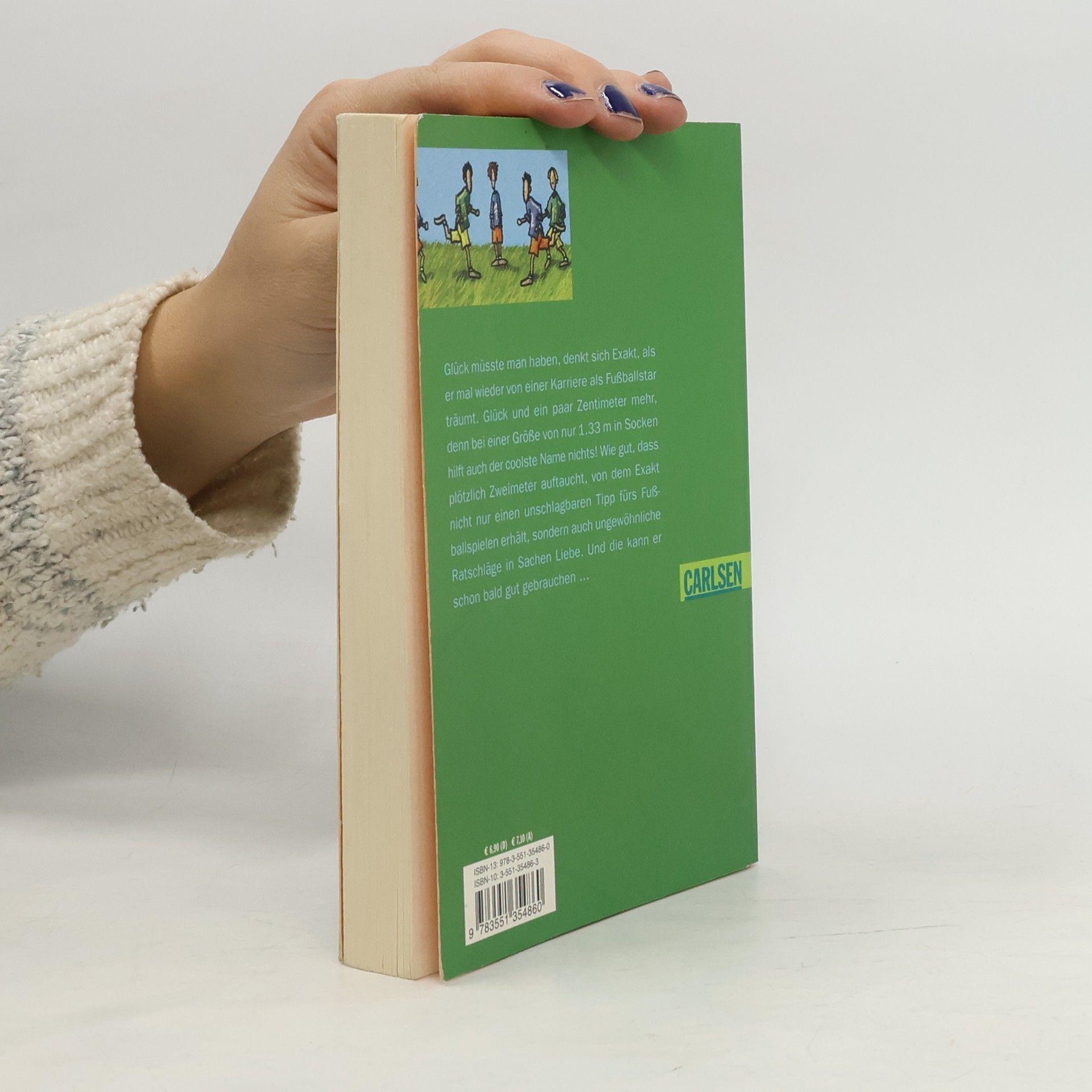 Glück müsste man haben, denkt sich Exakt, als er mal wieder von einer Karriere als Fußballstar träumt. Glück und ein paar Zentimeter mehr, denn bei einer Größe von nur 1,33 m hilft einem auch der coolste Name nichts. Schon gar nicht gegen so einen eingebildeten Typen wie Patrick, der grundsätzlich drei Tore hintereinander schießt. Wie gut, dass plötzlich Zweimeter auftaucht, Student in Geldnöten und das beste Gelegenheits-Kindermädchen, das Exakt sich vorstellen kann, wenn seine Eltern mal wieder auf Reisen sind. Von ihm erfährt er nicht nur einen unschlagbaren Trick fürs Fußballspielen, sondern auch ungewöhnliche Tipps in Sachen Liebe. Und die kann er gut gebrauchen, als aus heiterem Himmel bzw. im ruckelnden Fahrstuhl die schöne Helene vor ihm steht!