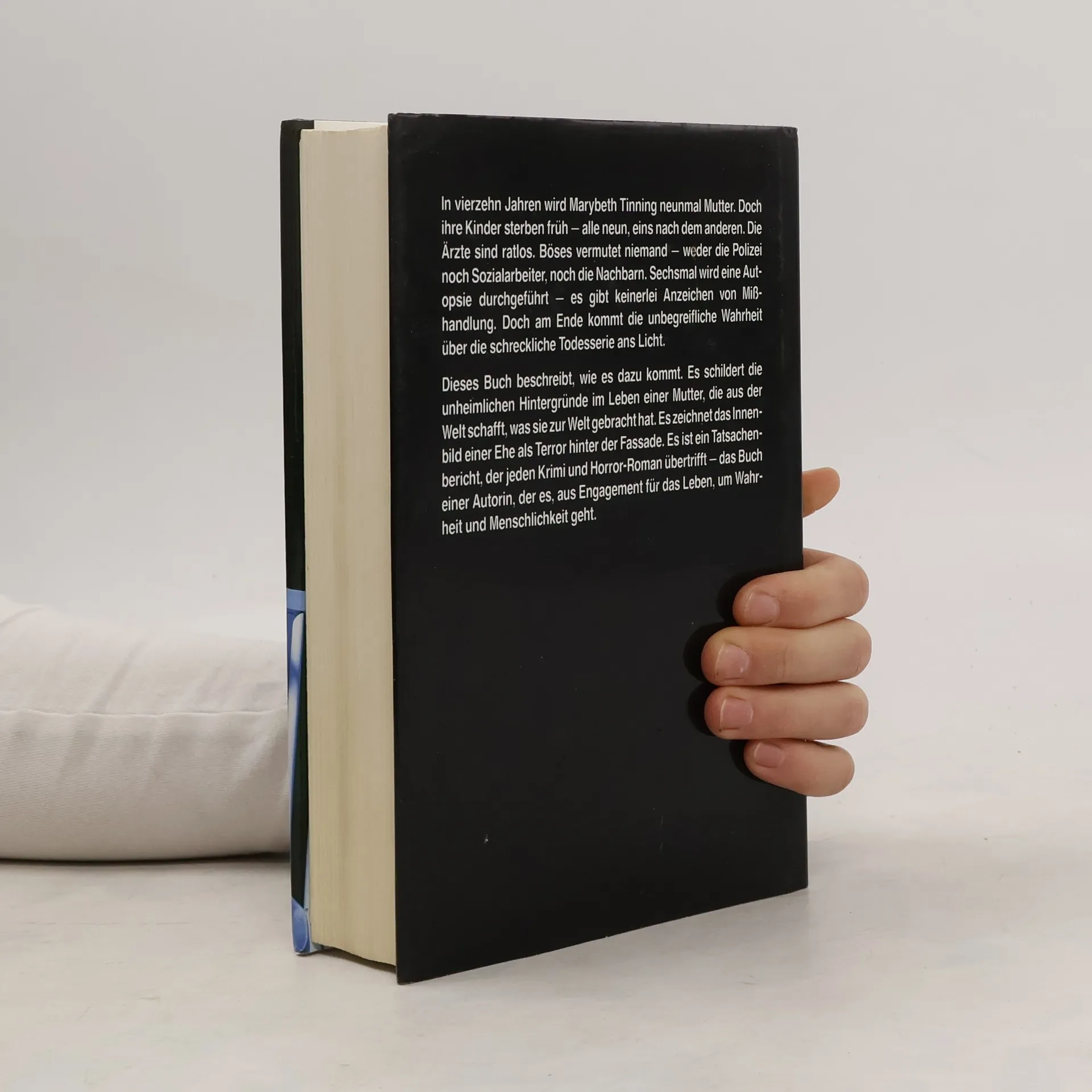 In vierzehn Jahren wird Marybeth Tinning neunmal Mutter. Doch ihre Kinder sterben früh - alle neun, eins nach dem anderen. Die Ärzte sind ratlos. Böses vermutet niemand - weder die Polizei noch Sozialarbeiter, noch die Nachbarn. Sechsmal wird eine Autopsie durchgeführt - es gibt keinerlei Anzeichen von Misshandlung. Doch am Ende kommt die unbegreifliche Wahrheit über die schreckliche Todesserie ans Licht. Dieses Buch bechreibt, wie es dazu kommt. Es schildert die unheimlichen Hintergründe im Leben einer Mutter, die aus der Welt schafft, was sie zur Welt gebracht hat. Es zeichnet das Innenbild einer Ehe als Terror hinter der Fassade.