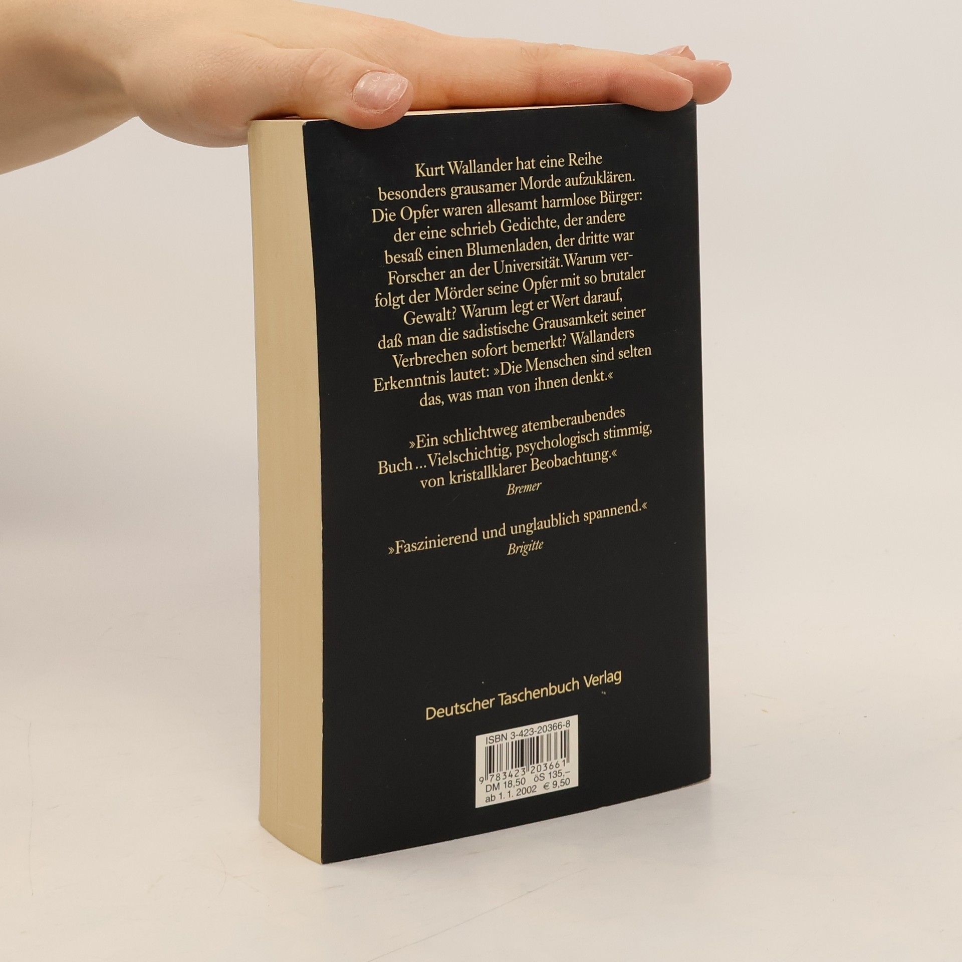 Wallander soll die brutalen Morde an fünf Männern – alles scheinbar achtbare Bürger – aufklären. Wallanders sechster Fall. Bei der Mordserie, die Kurt Wallander gerade aufzuklären hat, kann es selbst erfahrenen Polizisten kalt den Rücken hinunterlaufen: Einen alten Mann findet man in einer Pfahlgrube aufgespießt, einen anderen halbverhungert, beinahe nackt an einen Baum gebunden und erwürgt. Ein dritter wurde in einem mit Steinen beschwerten Sack in einem See ertränkt. Die Opfer scheinen auf den ersten Blick achtbare Bürger gewesen zu sein, doch stellt sich bei genaueren Nachforschungen sehr bald heraus, daß auch sie Frauen grausam mißhandelt haben. Wenn nun aber der Mord die Rache eines Opfers an Mördern und Vergewaltigern ist, muß Wallander sich beeilen, bevor das nächste, noch grausamere Verbrechen geschieht ...