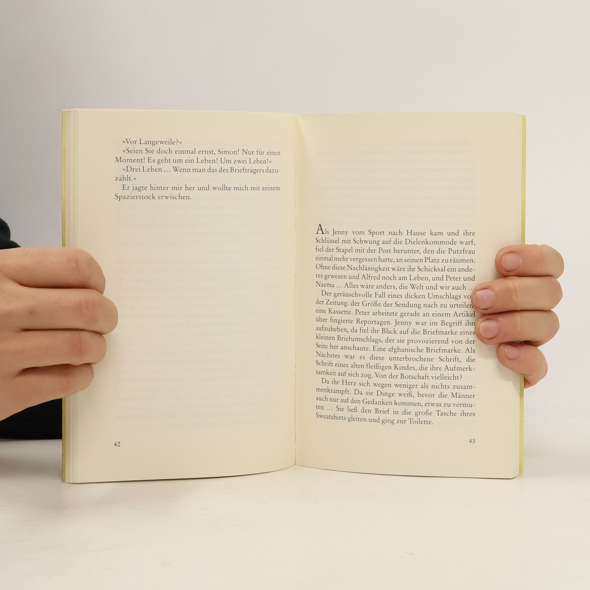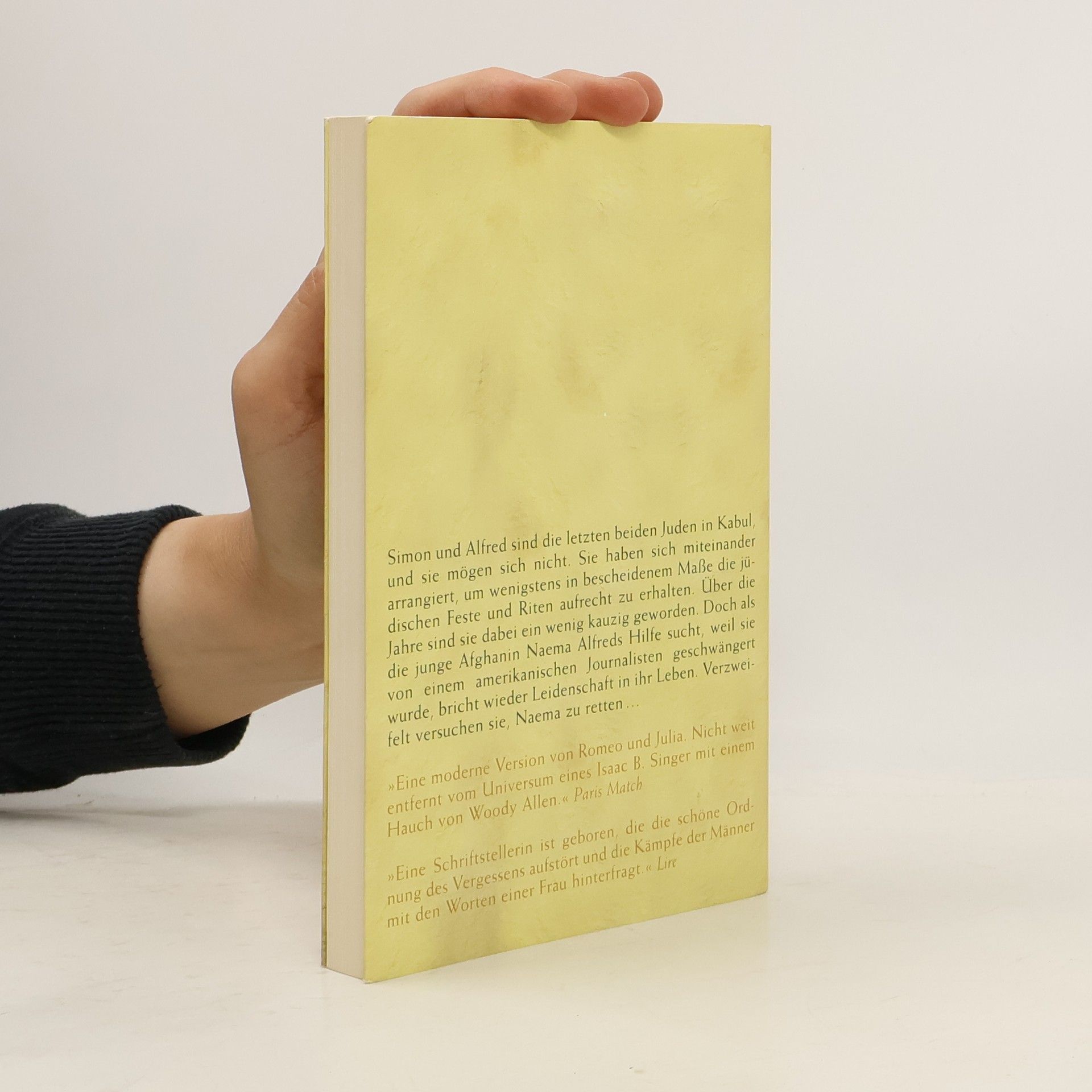 Eine Geschichte über Freundschaft und Fanatismus, über die zarten Regungen und falschen Versprechen der Liebe. Simon und Alfred sind die letzten beiden Juden in Kabul, und sie mögen sich nicht. Sie haben sich miteinander arrangiert, um wenigstens im bescheidenen Maße die jüdischen Feste und Riten aufrecht zu erhalten. Von den zehn Juden, die es für eine Synagoge braucht, muss man sich die fehlenden acht dann einfach vorstellen. So sind sie über die Jahre ein wenig kauzig geworden. Erst als die junge Afghanin Naema, die von einem amerikanischen Journalisten geschwängert wurde, Alfreds Hilfe sucht, bricht auch bei ihnen wieder Leidenschaft ins Leben, und voller Aktionismus versuchen sie, Naema zu retten.