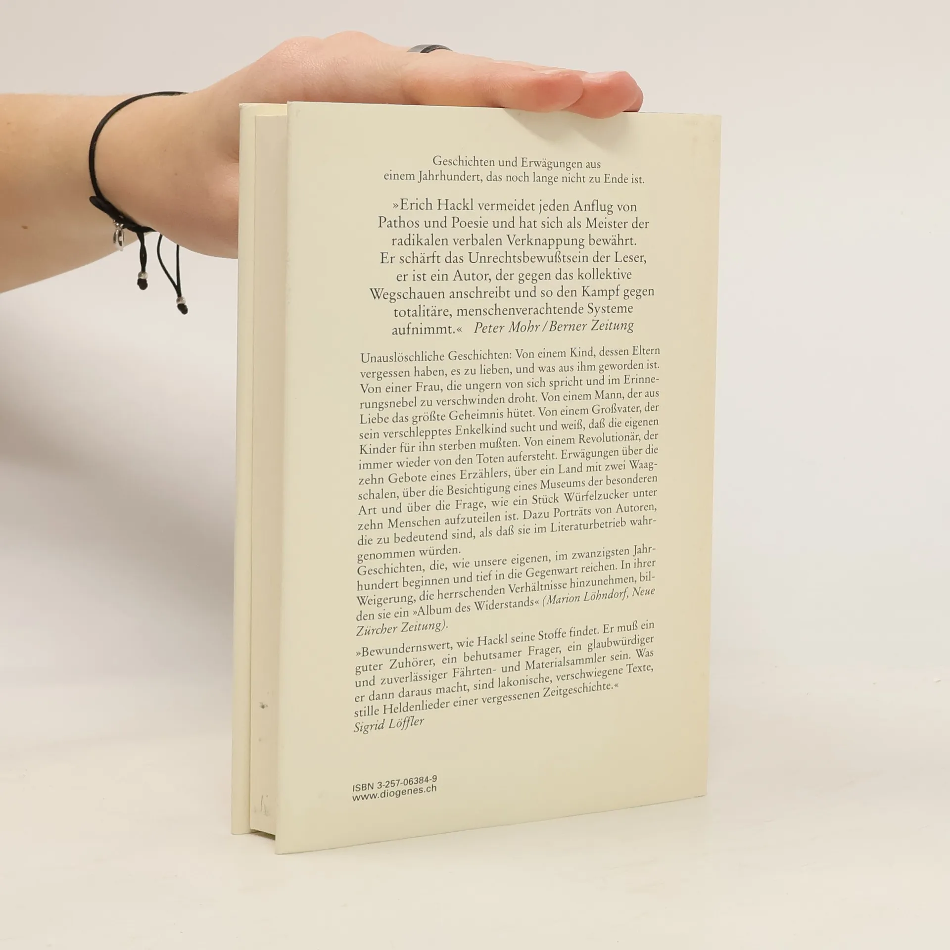 "Hackl recherchiert mit der Akribie eines zünftigen Historikers, errichtet sein poetisches Werk immer wieder auf dem persönlichen Zeugnis des Erlebten und Erlittenen. Kurzum: Lieber findet er Stoffe, als sie zu erfinden. Seine Texte sind deshalb freilich noch keine aus dem Staub der Archive geborgenen 'Fälle'. Jeder seiner Sätze ist sorgsam durchdacht, die Collagentechnik präzise, der kompositorische Aufbau raffiniert."