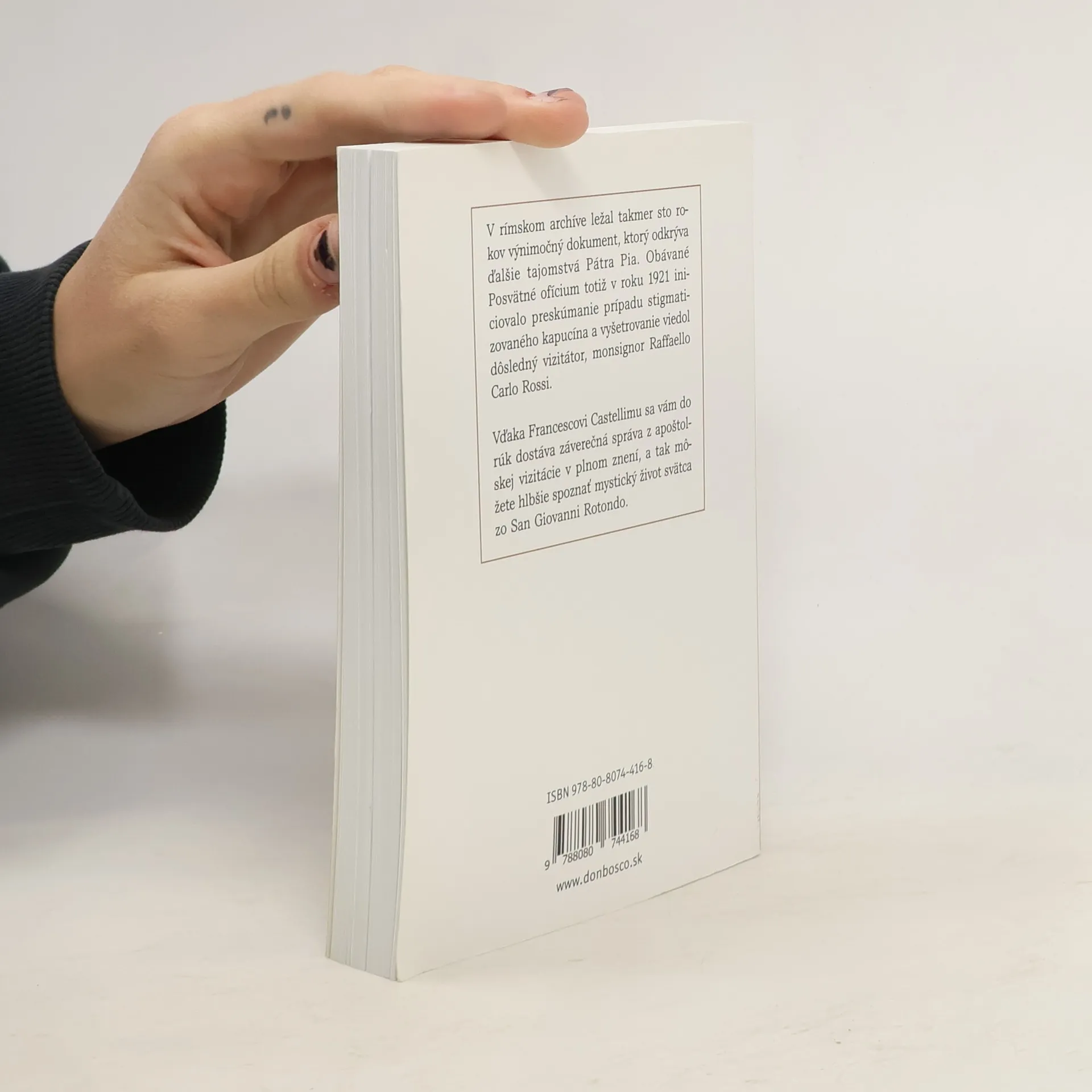 V rímskom archíve ležal takmer sto rokov výnimočný dokument, ktorý odkrýva ďalšie tajomstvá Pátra Pia. Obávané Posvätné ofícium totiž v roku 1921 iniciovalo preskúmanie prípadu stigmatizovaného kapucína a vyšetrovanie viedol dôsledný vizitátor, monsignor Raffaello Carlo Rossi. Vďaka Francescovi Castellimu sa vám do rúk dostáva záverečná správa z apoštolskej vizitácie v plnom znení, a tak môžete hlbšie spoznať mystický život svätca zo San Giovanni Rotondo. Nihil obstat: ThDr. Tibor Reimer, PhD.