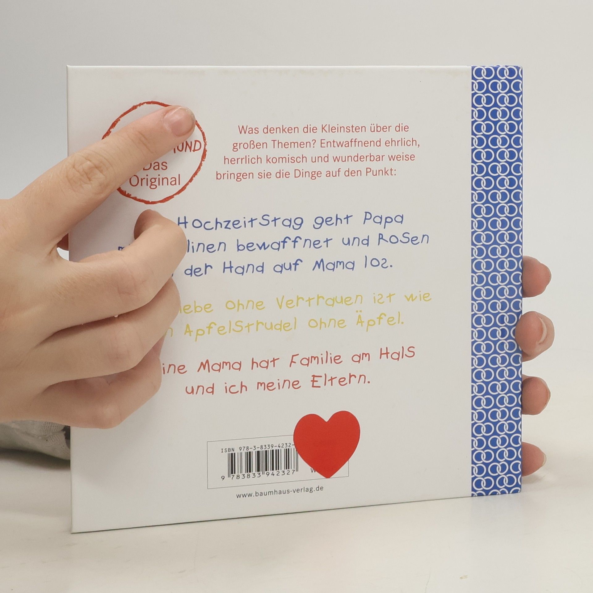 Was denken die Kleinsten über die großen Themen? Entwaffnend ehrlich, herrlich komisch und wunderbar weise bringen sie die Dinge auf den Punkt: Damit die Ehe glücklich wird, muss der Mann der Frau jeden Tag sagen, dass sie schön ist. Auch wenn sie aussieht, wie ein Lastwagen. Man bekommt Kinder, damit man nicht alleine ist. Was bei Frauen und Männern gleich ist: sie haben am anderen immer etwas auszusetzen.