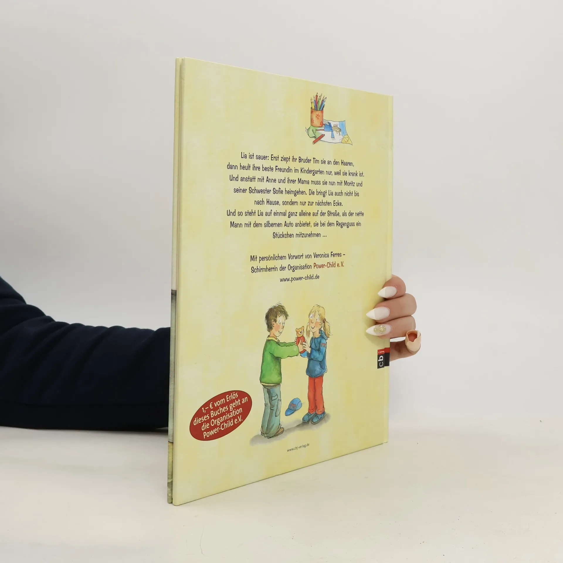 „Die Schwächsten in unserer Gesellschaft müssen geschützt werden, bevor etwas passiert.“ Veronica Ferres Sexueller Gewalt vorbeugen, lautet das Hauptanliegen von „Power-Child e. V.“ Kinder zu stärken ist das Konzept. Mit vielfältigen Beratungsangeboten tritt die 2002 gegründete Kinderschutzorganisation an die Öffentlichkeit und richtet bundesweit Veranstaltungen in Grundschulen und Kindereinrichtungen aus, um Prävention spielerisch zu üben. Das Bilderbuchprojekt „Nein, mit Fremden geh ich nicht!“ entstand in Kooperation von „Power-Child“ mit cbj. € 1,- pro verkauftem Exemplar fließt in die Arbeit der Kinderschutzorganisation. Lia ist sauer: Erst sucht Tim Streit, dann ist ihre Kindergartenfreundin krank und nun bringt Moritz' große Schwester sie nicht bis nach Hause, sondern nur bis zur nächsten Straßenecke. Und so steht Lia ganz alleine da, als der nette Mann mit dem silbernen Auto anbietet, sie ein Stück mitzunehmen. Für Lia geht die Begegnung gut aus und sie ist stolz, dass sie etwas Wichtiges ganz richtig gemacht hat: Sie sagt „Nein!“, laut und deutlich. Dafür brauchen Kinder Selbstbewusstsein. Sie müssen wissen, wann eine Situation gefährlich wird und wie sie sich richtig verhalten. Die Geschichte von Lia leistet dazu einen Beitrag und bietet Eltern, Erziehern und Kindern einen sensiblen Einstieg in das brisante Thema „Gewalt gegen Kinder“.