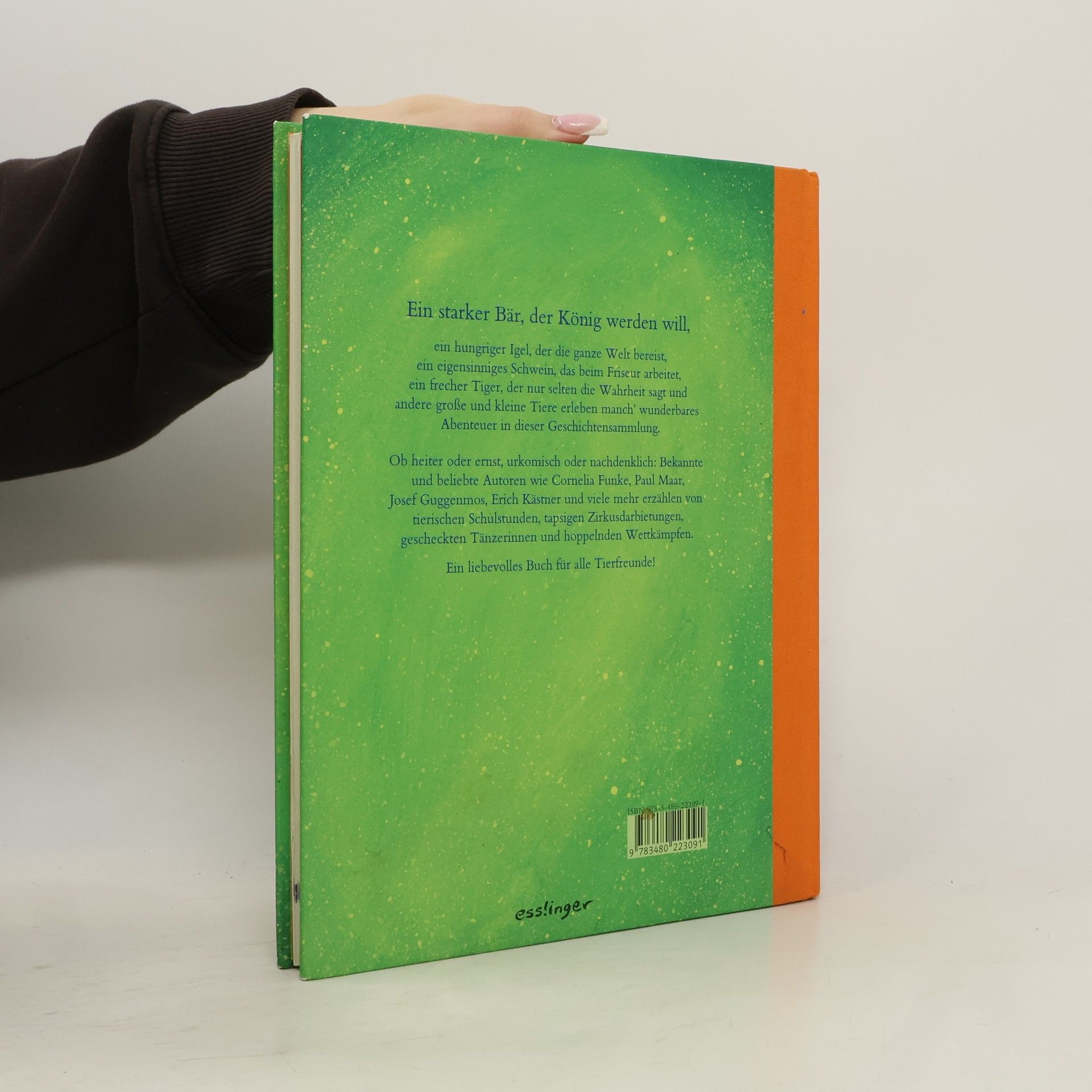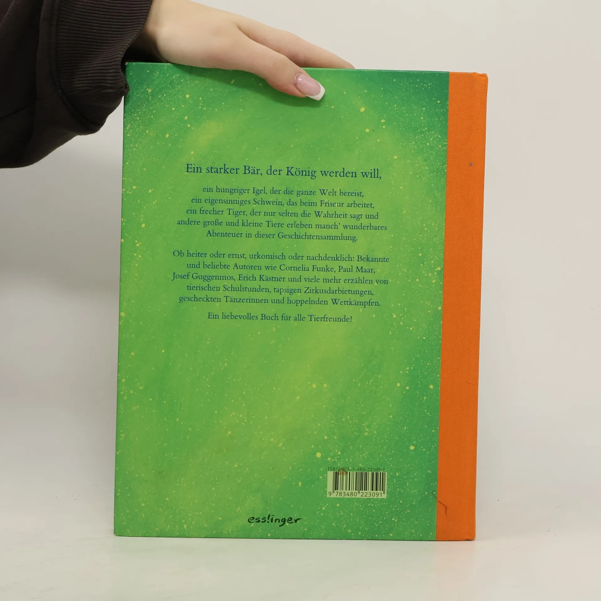 Ein starker Bär, der König werden will, ein hungriger Igel, der die ganze Welt bereist, ein Schwein, das zum Friseur geht, ein frecher Tiger, der nur selten die Wahrheit sagt und andere große und kleine Tiere erleben manch wunderbares Abenteuer in dieser Geschichtensammlung.Bekannte und beliebte Autoren wie Cornelia Funke, Paul Maar, Erich Kästner und viele mehr erzählen von Vier und Zweibeinern, von Tieren, die Menschen im Alltag begleiten, und von Fabelwesen, die Freunde suchen und finden, teilen lernen oder gar ihre Tanzund Gesangskünste zum Besten geben ...