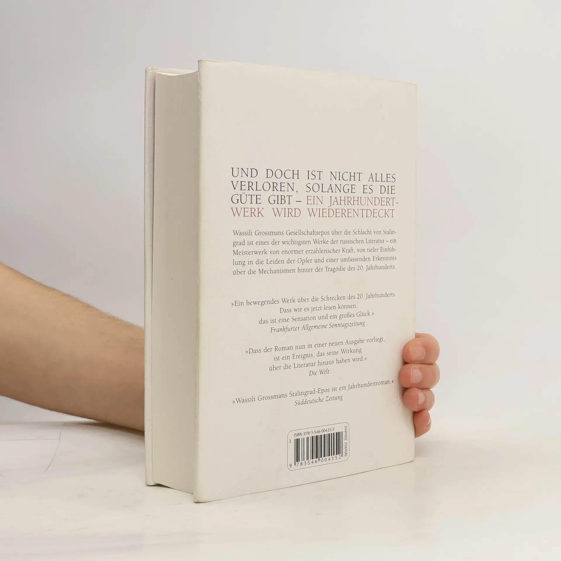 Als Anfang Februar 1943 die 6. deutsche Armee in Stalingrad kapituliert, bedeutet dies nicht nur die Wende im Zweiten Weltkrieg, für die Sowjets ist Stalingrad auch ein Wendepunkt in ihrem Verhältnis zu Diktatur und Terror. Mit großer Anteilnahme beschwört Wassili Grossman Episoden aus dem Kampf an der Wolga, erzählt vom Häftlingsleben und -sterben in deutschen KZ, Gefangenenlagern und in den sowjetischen Gulags, wobei die frappierende Verwandtschaft von Nationalsozialismus und Sowjetregime offengelegt wird. Ob der Physiker Strum und die weitverzweigte Stalingrader Familie Schapownikow, der in einem deutschen Lager inhaftierte Michail Mostoskoi, die deutschen und sowjetischen Militärs, Wissenschaftler, Soldaten und Bürger – Wassili Grossman hat die vielen Einzelschicksale zu einem groß angelegten Erzählkosmos verwoben, der trotz der Schrecken des Totalitarismus von der einen Hoffnung nicht lässt: der einfachen menschliche Güte, die selbst dann ihre Wirkung zeigt, wenn die äußeren Ereignisse gleichgültig und brutal über sie hinweggehen.