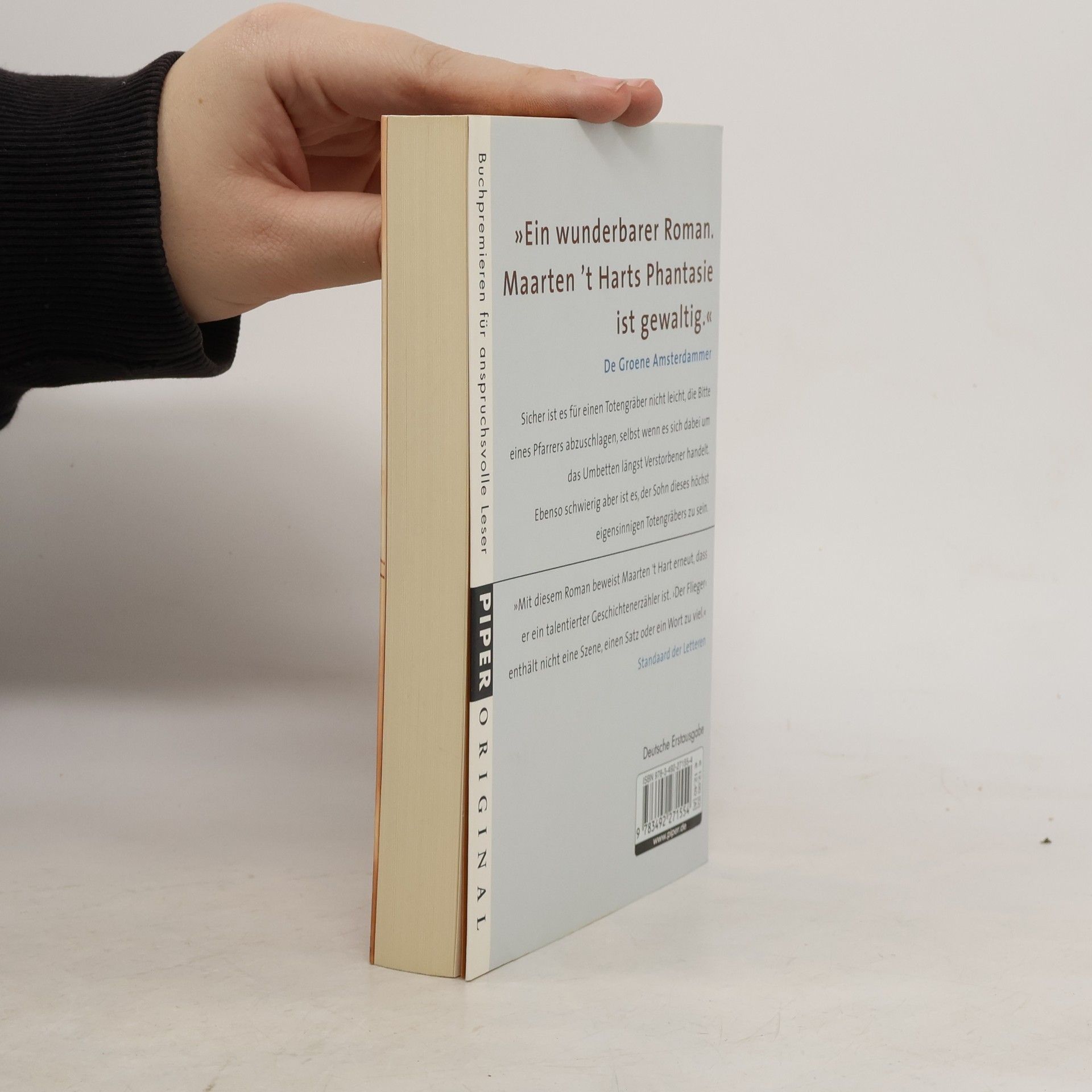 'Mein Vater war Totengräber. Um halb acht morgens begann sein Tag auf dem Friedhof, und um eins legte er seine erste Pause ein. Beim Abendbrot erzählte er mir und meiner Mutter von seinen Erlebnissen zwischen den Toten.' So beginnt Maarten ´t Harts tragikomischer Roman um einen protestantischen Totengräber, der sich beharrlich weigert, der Bitte seiner katholischen Nachbargemeinde nachzukommen: Ihre Verstorbenen sollen auf seinen Friedhof umgebettet werden, doch es ist keineswegs einzusehen, dass diese Aufgabe mit der Schaufel erledigt werden muss. – Amüsant und eigenwillig erzählt Maarten ´t Hart in 'Der Flieger',1998 in den Niederlanden erschienen, die Geschichte eines Totengräbers und seines Sohnes, dessen Leben inmitten des Todes seinen Ausgang nimmt.