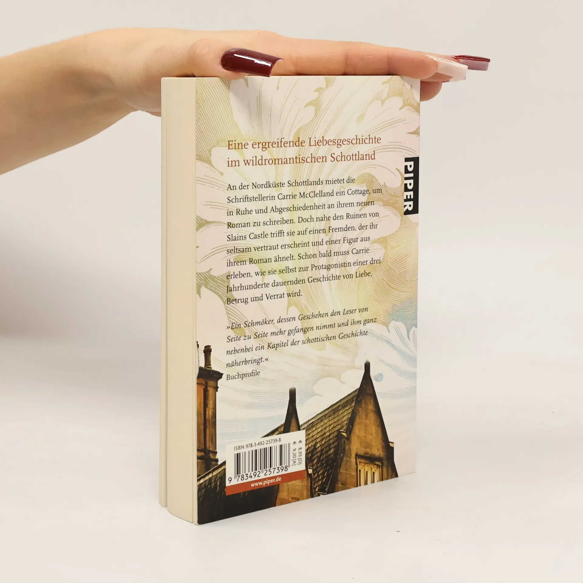 An der Nordküste Schottlands mietet die Schriftstellerin Carrie McClelland ein Cottage, um in Ruhe und Abgeschiedenheit an ihrem neuen Roman zu schreiben. Doch nahe den Ruinen von Slains Castle trifft sie auf einen Fremden, der ihr seltsam vertraut erscheint und einer Figur aus ihrem Roman ähnelt. Schon bald muss Carrie erleben, wie sie selbst zur Protagonistin einer drei Jahrhunderte dauernden Geschichte von Liebe, Betrug und Verrat wird.