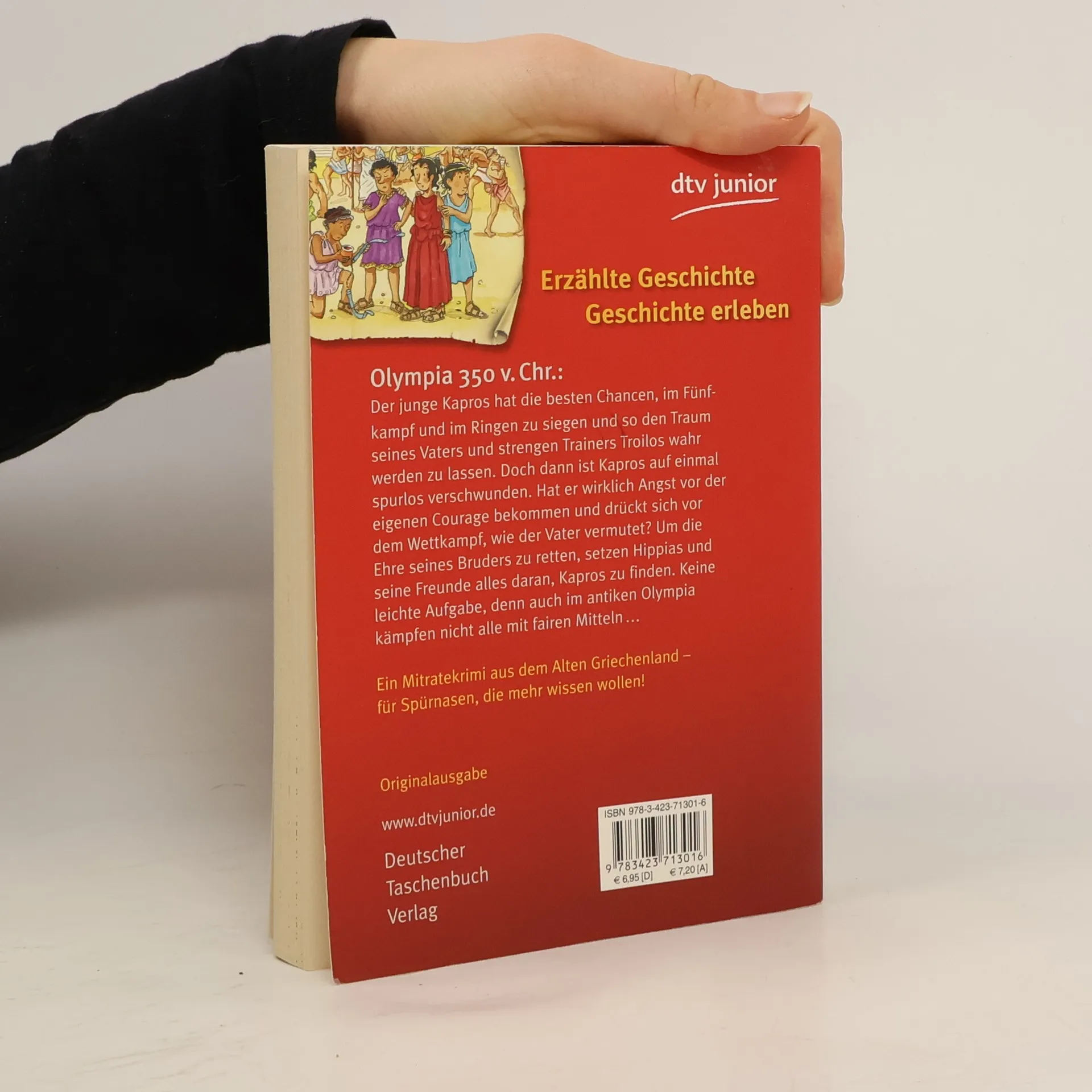 Hippias' Bruder Kapros hat die besten Chancen, im Fünfkampf und im Ringen zu siegen, doch dann ist er plötzlich verschwunden! Hat er auf einmal Angst vor der eigenen Courage und der großen Konkurrenz bekommen? Pasion, Nike und Hippias bringen mitten im Getümmel der Spiele des Jahres 350 v. Chr. üble Machenschaften ans Licht, und haben dabei so manches Rätsel zu lösen.