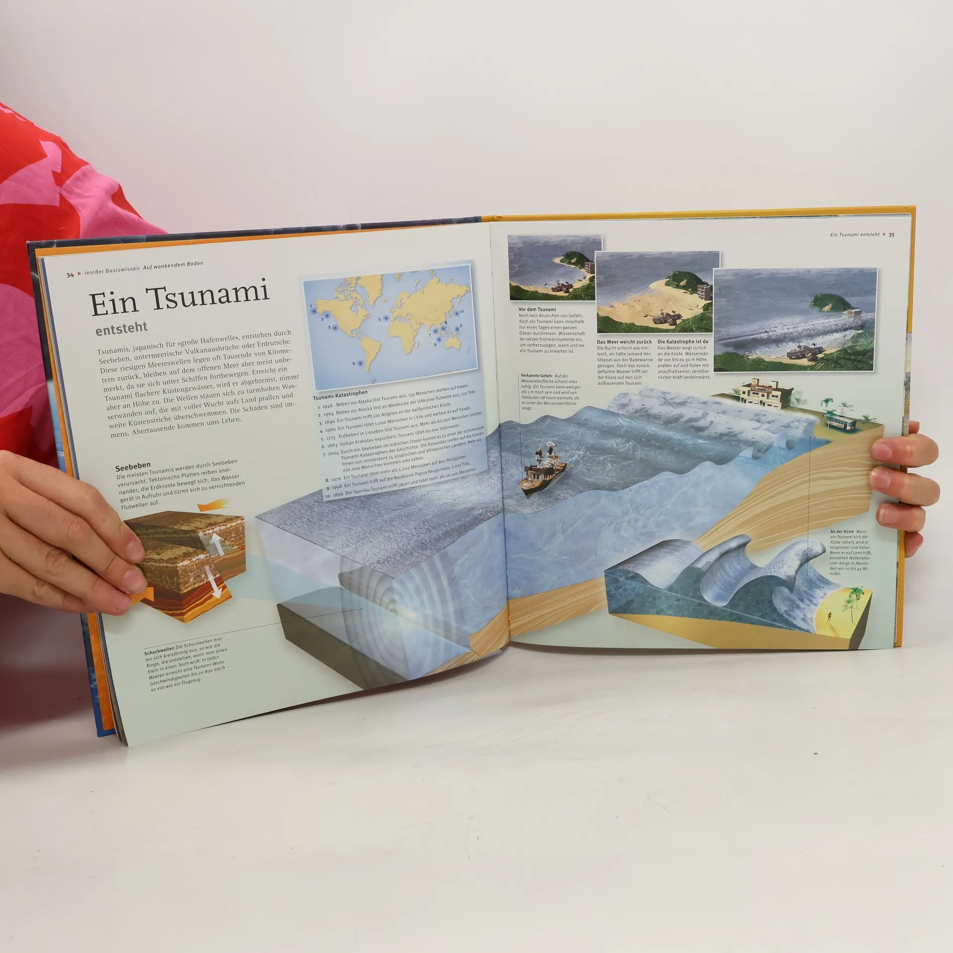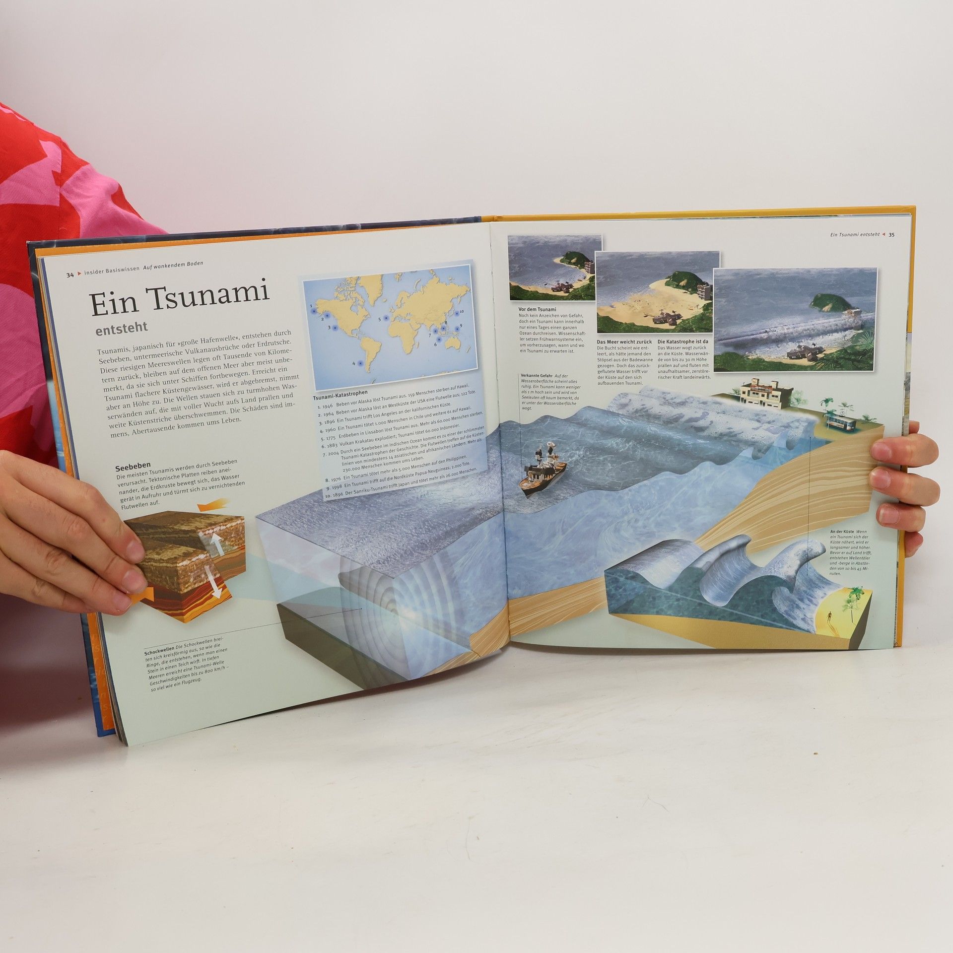 Die Erde bebt und speit Feuer! Alles über Vulkane, Erdbeben und Geysire Glühendheiße Lavaströme, gewaltige Erdstöße und sprudelnde Geysire – was aus dem Inneren der Erde kommt, ist voller Geheimnisse. Mit beeindruckenden 3D-Bildern nimmt das Sachbuch die Leser mit bis zum feurigen Kern unseres Planeten, zeigt die unterschiedlichen Schichten, fasst den aktuellen Forschungsstand zusammen und berichtet von den größten und folgenreichsten Vulkanausbrüchen und Erdbeben in der Geschichte, wie z. B. der Ausbruch des Vesuv 79 n. Chr., bei dem die Städte Pompeji und Herculaneum zerstört wurden, oder die Tsunami-Katastrophe im Indischen Ozean 2004. Ein faszinierender Blick in das Innere der Erde, mit Glossar, Landkarten und Tabellen.