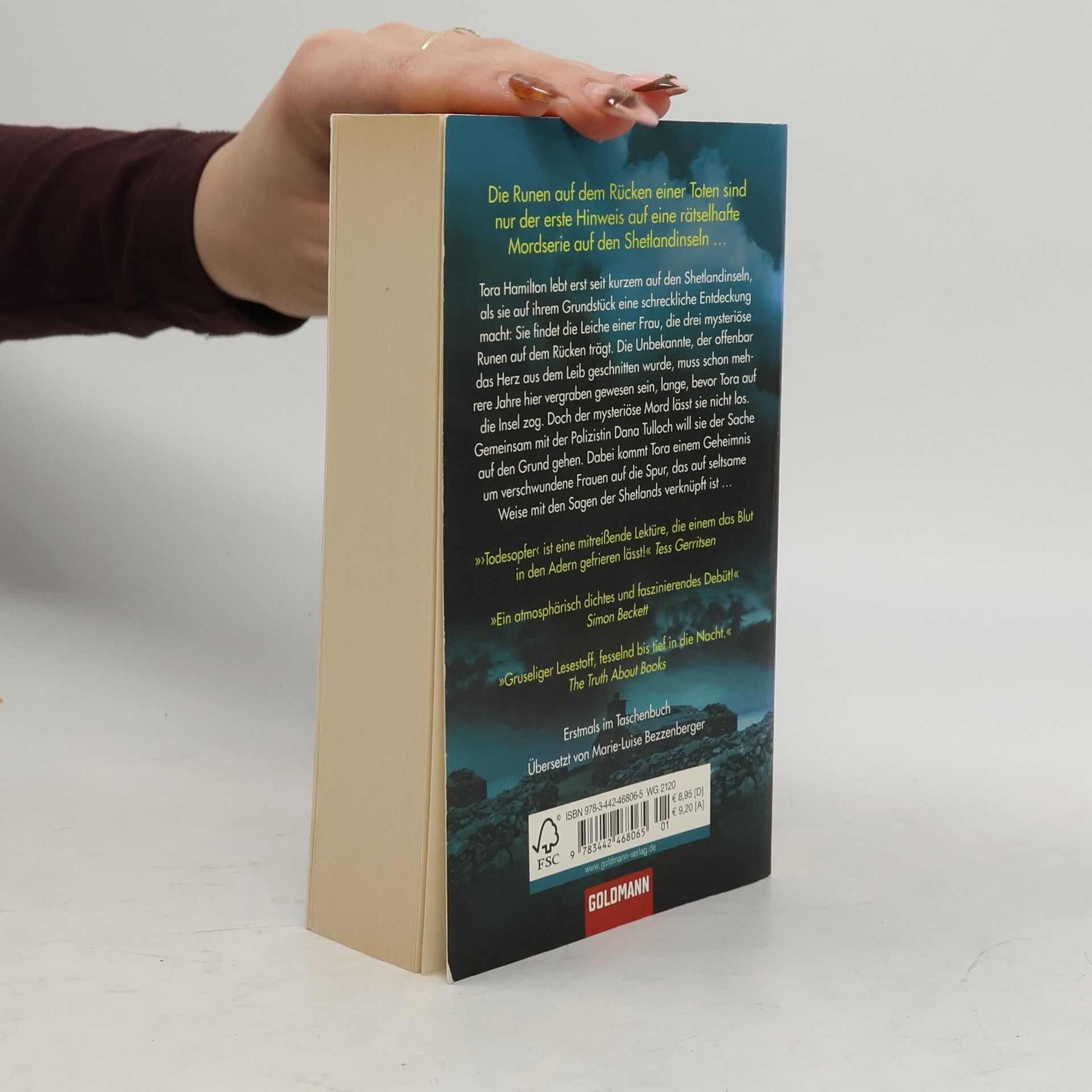 Die Thriller-Sensation aus England Tora Hamilton lebt erst seit kurzem auf den Shetlandinseln, als sie auf ihrem Grundstück eine schreckliche Entdeckung macht: Sie findet die Leiche einer Frau, die drei mysteriöse Runen auf dem Rücken trägt. Die Unbekannte war das Opfer eines brutalen Mordes, und gemeinsam mit der Polizistin Dana Tulloch will Tora der Sache auf den Grund gehen. Dabei kommt sie einem dunklen Geheimnis um verschwundene Frauen auf die Spur, das auf unheimliche Weise mit den Sagen der Shetlands verknüpft ist … Mitreißende Spannung vor der düster-bedrohlichen Kulisse der Shetlandinseln.