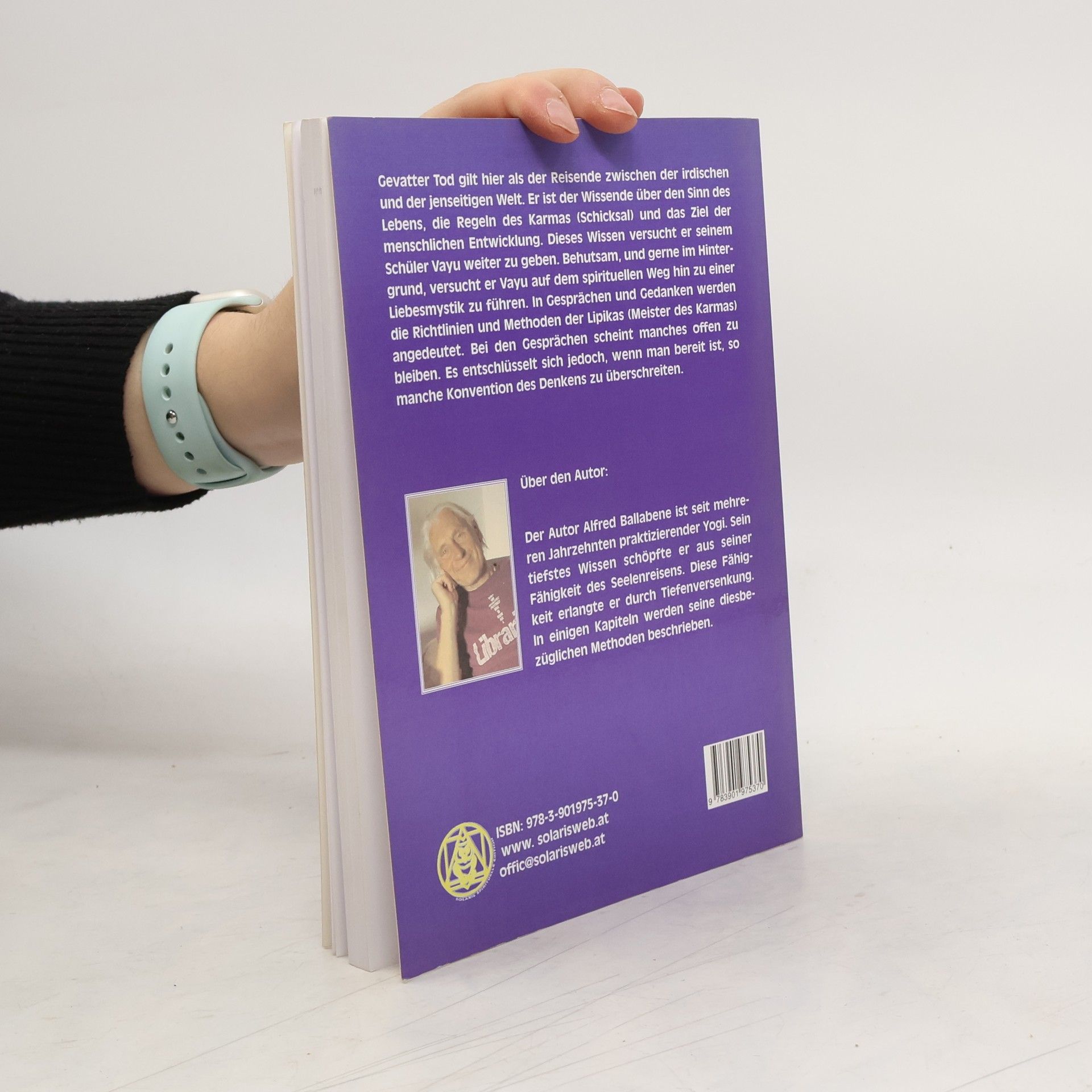 Gevatter Tod gilt hier als der Reisende zwischen der irdischen und der jenseitigen Welt. Er ist der Wissende über den Sinn des Lebens, die Regeln des Karmas (Schicksal) und das Ziel der menschlichen Entwicklung. Dieses Wissen versucht er seinem Schüler Vayu weiter zu geben. Behutsam und gerne im Hintergrund versucht er Vayu auf dem spirituellen Weg hin zu einer Liebesmystik zu führen. In Gesprächen und Gedanken werden die Richtlinien und Methoden der Lipikas (Meister des Karmas) angedeutet. Bei den Gesprächen scheint manches offen zu bleiben. Es entschlüsselt sich jedoch, wenn man bereit ist, so manche Konvention des Denkens zu überschreiten. Der Autor Alfred Ballabene ist seit mehreren Jahrzehnten praktizierender Yogi. Sein tiefstes Wissen schöpfte er aus seiner Fähigkeit des Seelenreisens. Diese Fähigkeit erlangte er durch Tiefenversenkung. In einigen Kapiteln werden seine diesbezüglichen Methoden beschrieben.