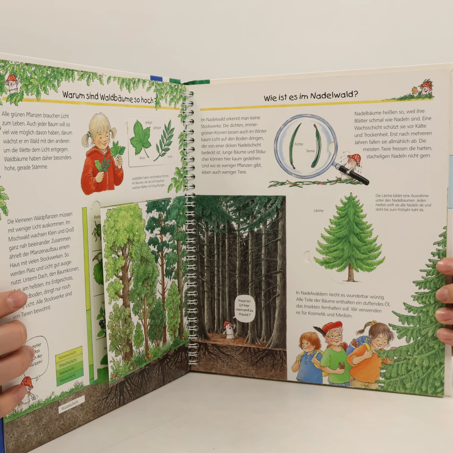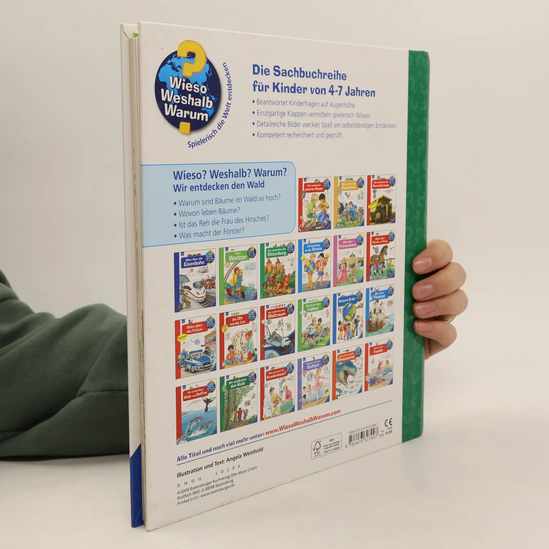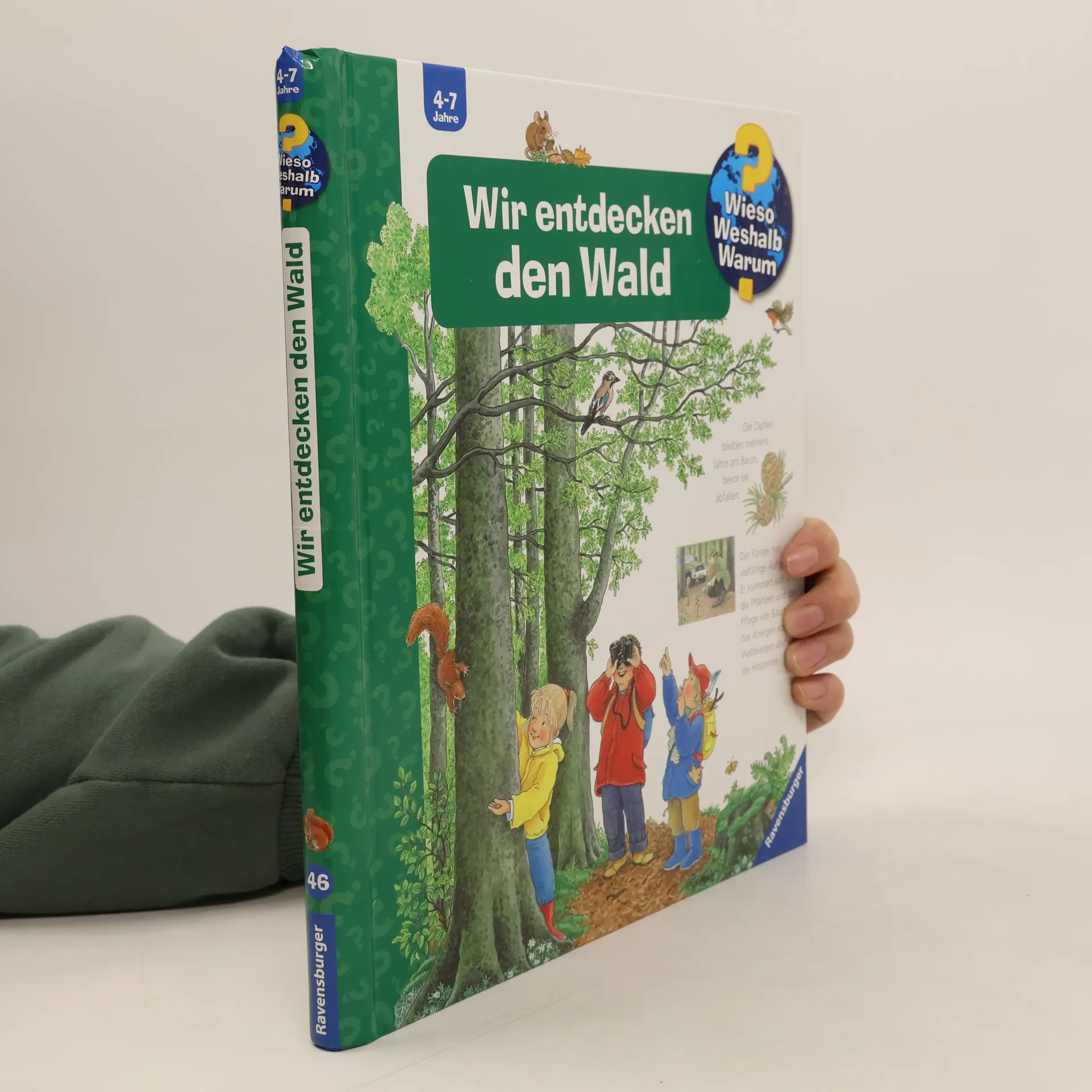 Auf Wanderwegen toben, Eicheln und Zapfen aufsammeln und mit etwas Glück ein Reh erspähen – ein Besuch im Wald lohnt sich immer. Wer den Geheimnissen des Waldes auf den Grund gehen möchte, braucht dieses Buch: Welches Blatt gehört zu welchem Baum? Ist das Reh die Frau des Hirsches? Was macht ein Förster? Hier entdecken Kinder in detailreichen Bildern mit vielen Klappen jede Menge Sachwissen über die Pflanzen- und Tierwelt des Waldes. Wieso? Weshalb? Warum? Die Sachbuchreihe für Kinder von 4–7 Jahren Jeden Tag entdecken Kinder etwas Neues – da kommen viele Fragen auf. Warum sind die Dinosaurier ausgestorben? Wo ist die Sonne in der Nacht? Wozu brauchen wir das Blut? Die beliebte Sachbuchreihe Wieso? Weshalb? Warum? gibt Kindern Antworten auf Augenhöhe. Dabei werden die unterschiedlichsten Themen aus der Alltags- und Interessenswelt der Kinder altersgerecht und mit viel Liebe zum Detail unter die Lupe genommen. Detailreiche Bilder, verständliche Sachtexte und überraschende Klappen, die Bewegungen oder Abläufe veranschaulichen und hinter die Dinge blicken lassen, ermöglichen Kindern, sich ihre Themen selbst zu erschließen. Der Spaß am eigenhändigen Entdecken, die liebevolle Umsetzung und die qualitativ hochwertige Ausstattung garantieren langanhaltende Freude an jedem einzelnen Buch.