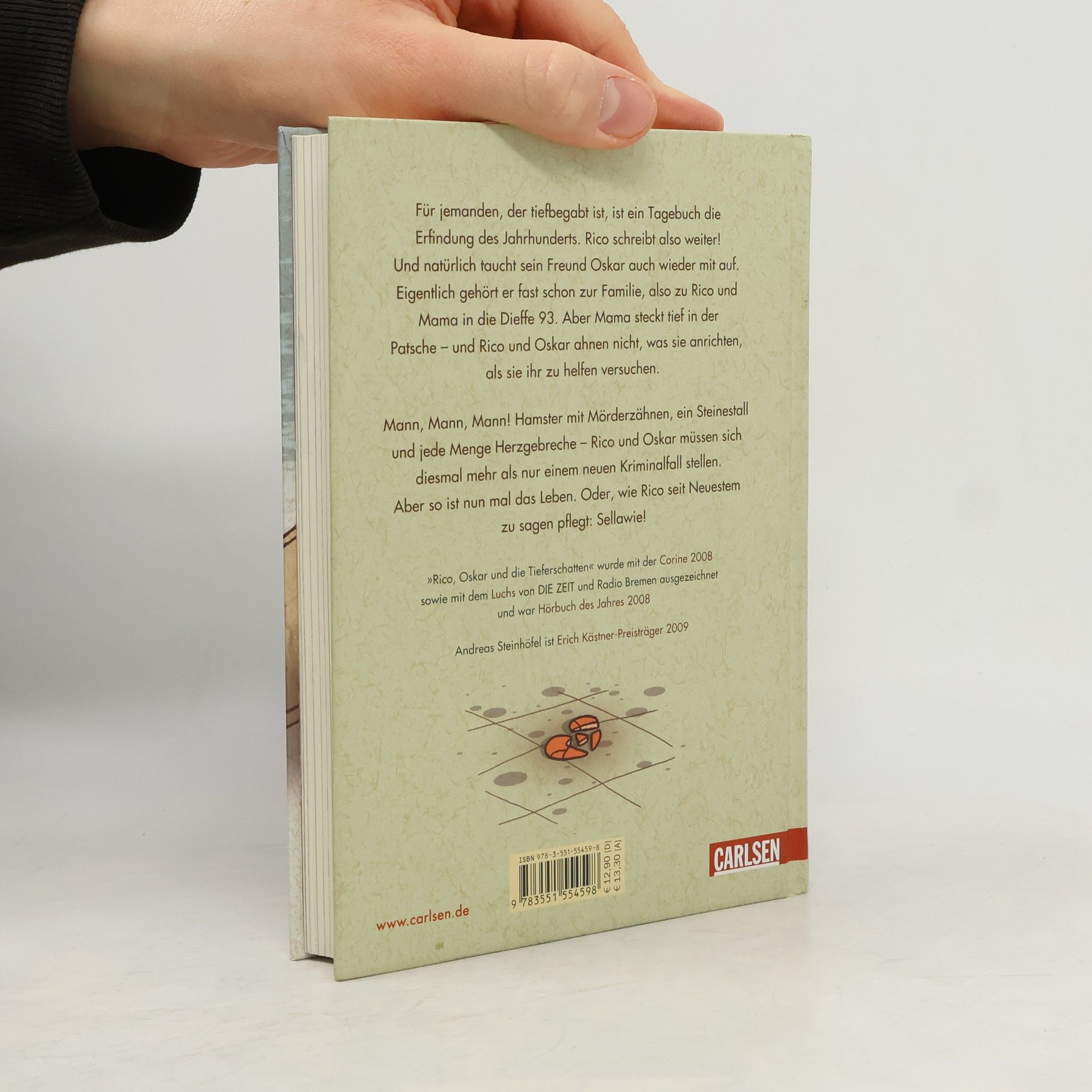 „Für jemanden, der tiefbegabt ist und ins Förderzentrum geht, weil er einen Kopf wie eine Bingotrommel hat, ist ein Tagebuch die Erfindung des Jahrhunderts.“ Rico ist wieder da! Und natürlich ist sein Freund Oskar mit von der Partie. Eigentlich gehört er praktisch schon zur Familie, also zu Mama und Rico in die Dieffe 93. Aber diesmal trägt Oskar keinen Helm, schließlich sind die beiden Freunde inkognito unterwegs. Handtaschen, Hamster mit Mörderzähnen und jede Menge Herzgebreche - Rico und Oskar müssen sich nicht nur kriminalistischen Herausforderungen stellen. Mann, Mann, Mann. Aber wie Rico so schön erklärt: Sellawie. Alle Bücher über Rico und Oskar:Rico, Oskar und der Diebstahlstein Rico, Oskar und das Herzgebreche Rico, Oskar und die TieferschattenRico, Oskar und das Vomhimmelhoch Kindercomics:Rico & Oskar – Fische aus Silber Rico & Oskar – Die RegenhütteRico & Oskar – Die perfekte ArschbombeRico & Oskar – Die Sache mit den Öhrchen