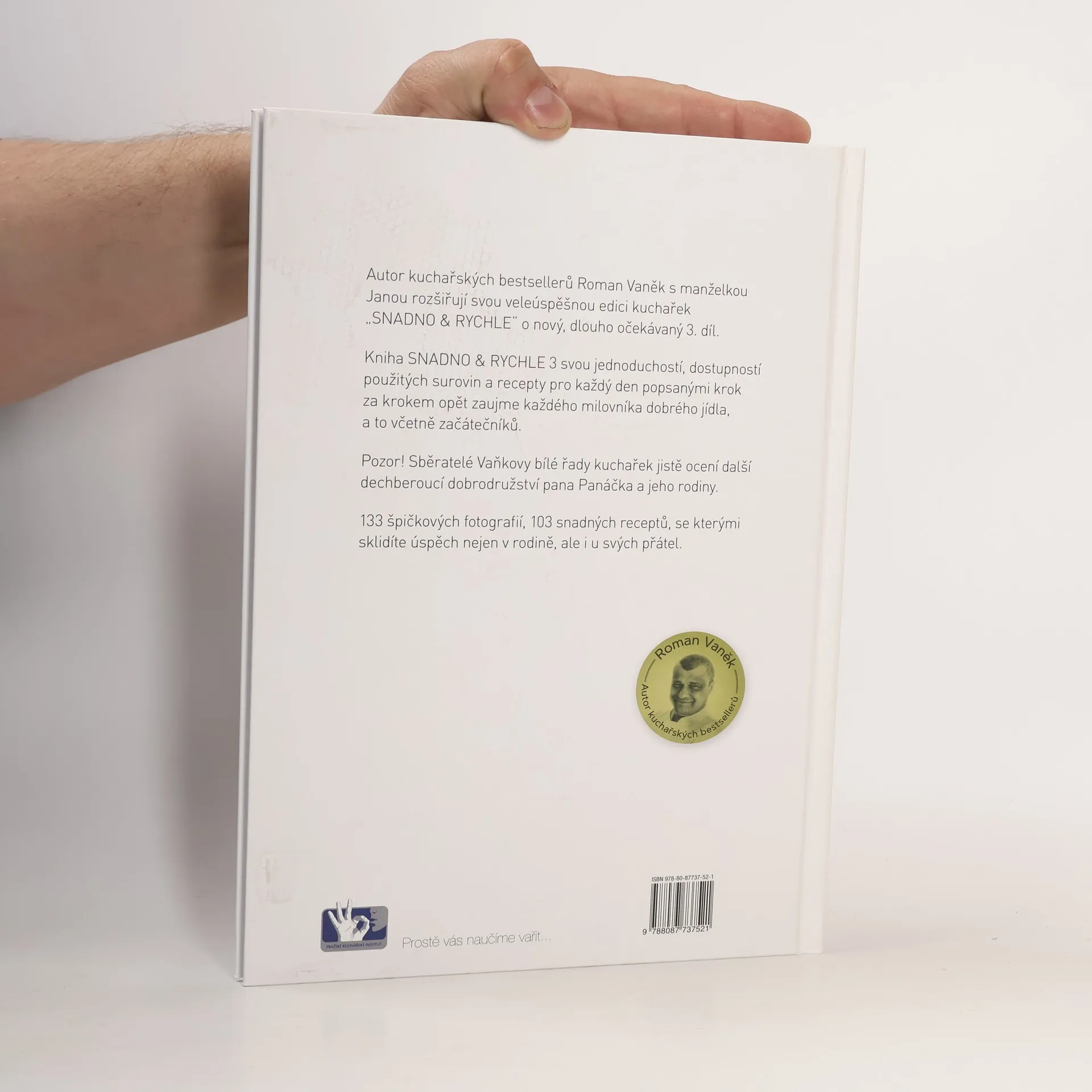 Autor kuchařských bestsellerů Roman Vaněk s manželkou Janou rozšiřují jejich veleúspěšnou edici kuchařek „Snadno & Rychle“ o nový, dlouho očekávaný 3.díl. Kniha SNADNO & RYCHLE 3 svou jednoduchostí, dostupností použitých surovin a recepty pro každý den popsanými „krok za krokem“ opět zaujme každého milovníka dobrého jídla, a to včetně začátečníků. Pozor! Sběratelé „Vaňkovy bílé řady kuchařek“ jistě ocení další dechberoucí dobrodružství pana Panáčka a jeho rodiny. 96 stran, 133 špičkových fotografií, 103 jednoduchých receptů, se kterými sklidíte úspěch nejen v rodině, ale i u svých přátel.