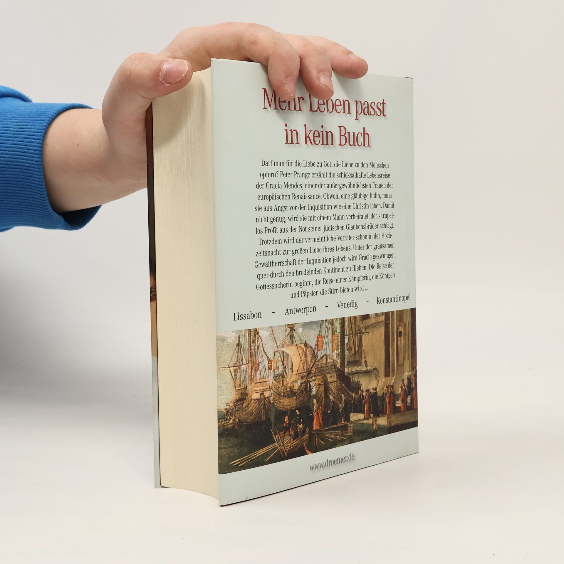 Mehr Leben passt in kein Buch Darf man für die Liebe zu Gott die Liebe zu den Menschen opfern? Peter Prange erzählt die schicksalhafte Lebensreise der Gracia Mendes, einer der außergewöhnlichsten Frauen der europäischen Renaissance. Obwohl eine gläubige Jüdin muss sie aus Angst vor der Inquisition wie eine Christin leben. Damit nicht genug, wird sie mit einem Mann verheiratet, der skrupellos Profit aus der Not seiner jüdischen Glaubensbrüder schlägt. Doch schon in der Hochzeitsnacht wird der vermeintliche Verräter zur großen Liebe ihres Lebens. Unter der grausamen Gewaltherrschaft der Inquisition aber wird Gracia gezwungen, quer durch den brodelnden Kontinent zu fliehen. Die Reise der Gottessucherin beginnt, die Reise einer Kämpferin, die Königen und Päpsten die Stirn bieten wird ...