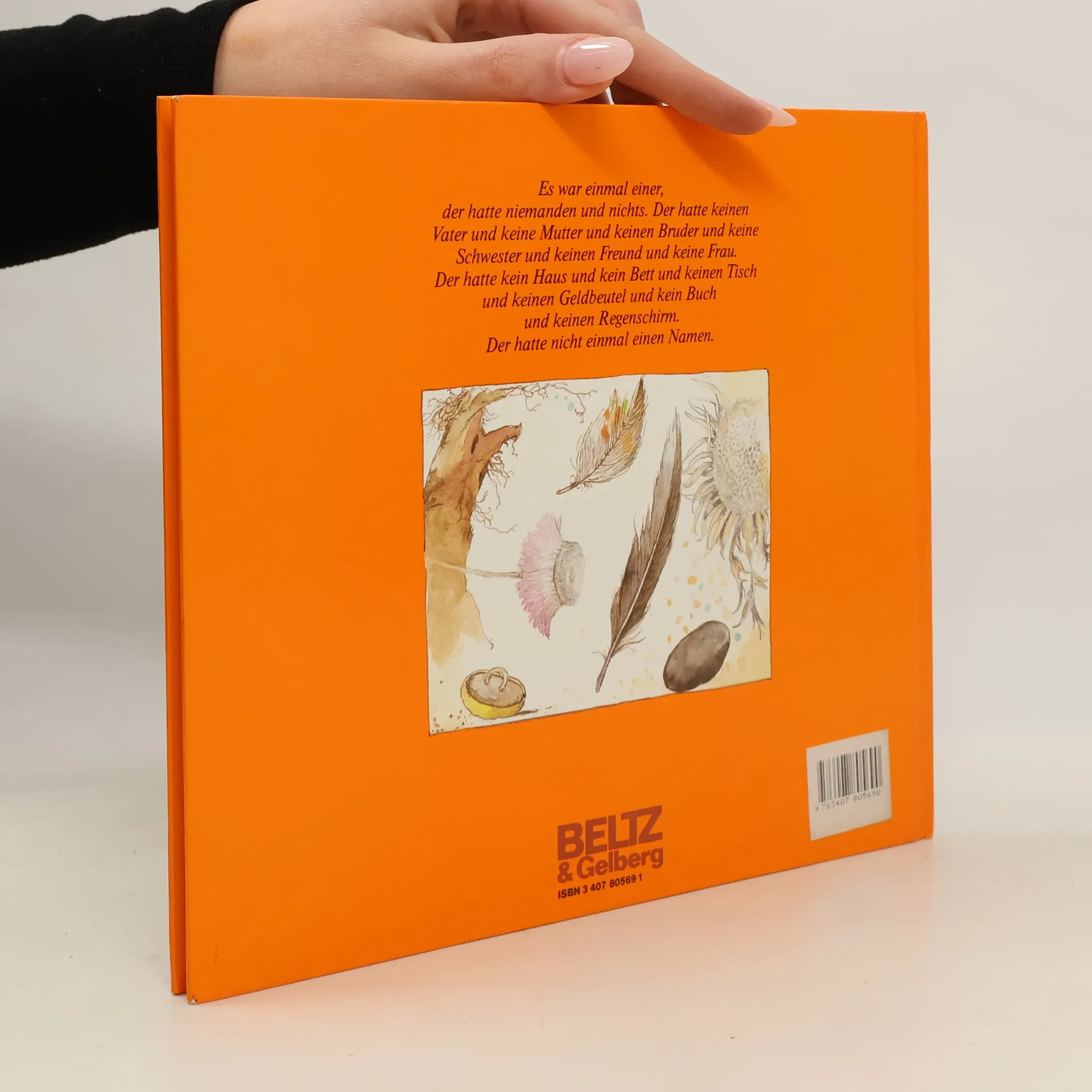 Es war einmal einer, der hatte niemanden und nichts. Der hatte keinen Vater und keine Mutter und keinen Bruder und keine Schwester und keinen Freund und keine Frau. Der hatte kein Haus und kein Bett und keinen Tisch und keinen Geldbeutel und kein Buch und keinen Regenschirm. Der hatte nicht einmal einen Namen. "Wenn Christine Nöstlinger und Janosch sich zusammenfinden, um gemeinsam ein Bilderbuch zu machen, so muß etwas Besonderes dabei herauskommen, etwas, in dem Frivoles, Hintergründiges, und auch Gesellschaftskritisches mitschwingt. Sicher ist ein prüder Zeitgenosse wenig begeistert von dieser Bilderbuchgeschichte und möchte sie vor allem vor Kindern verstecken. Andere aber - und sie sind gewiss in der Mehrzahl - werden begeistert sein von den Abenteuern und Erlebnissen des namenlosen Globetrotters, der sich bei aller Unstetigkeit nach Geborgenheit sehnt. Die Geschichte - und das wird durch die pastellfarbenen Bilder noch unterstrichen - ist bei aller Situationskomik sehr zart und fein. Ein Bilderbuch für Kinder und für Erwachsene!