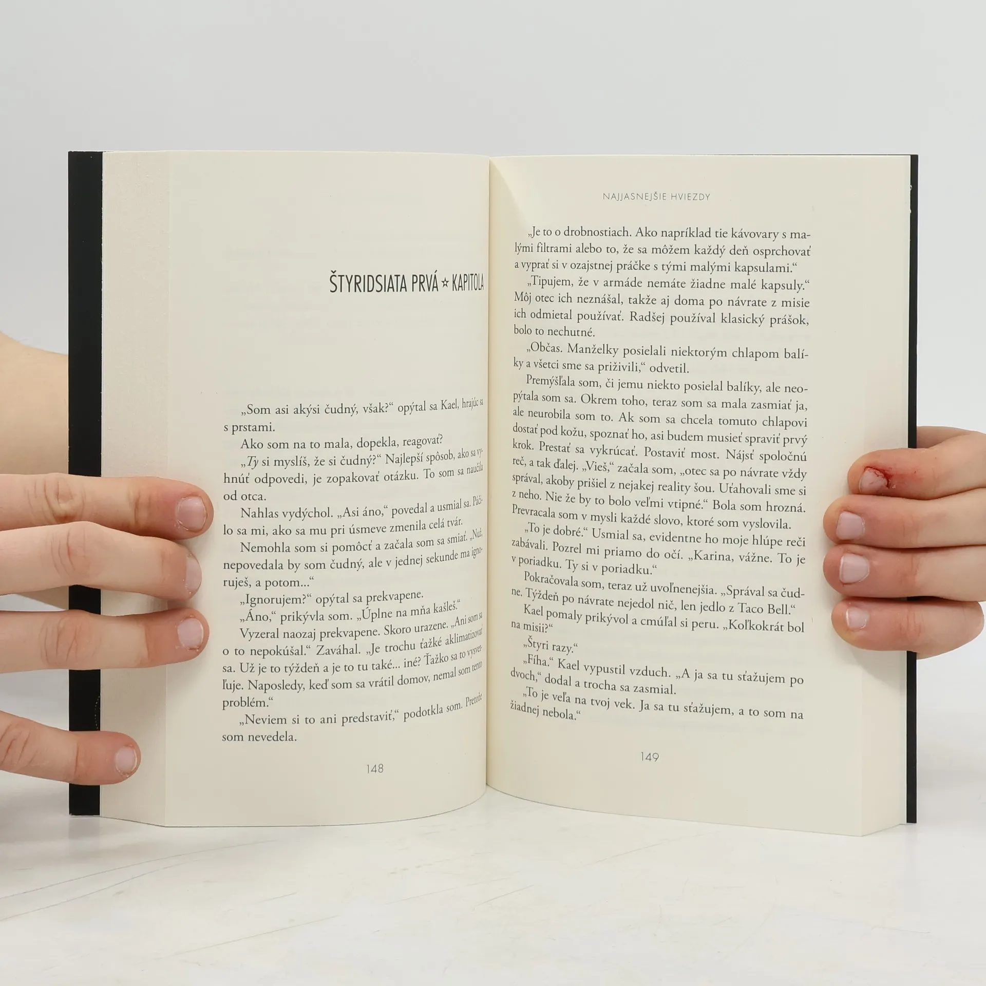 Strhujúci príbeh o láske a klamstvách Karina pozná tvrdú realitu armádneho života. A ako každý, kto vyrástol v blízkosti vojenskej základne, vie, čo nasleduje po návrate vojaka z misie. Preto sa snaží budovať si pokojný život vo vlastnom dome. K rodine sa však neotáča chrbtom. Drží ju pokope. Aj keď je otec na misii, aj keď má brat Austin opletačky so zákonom. Austin robí jednu hlúposť za druhou a otec to už nezvláda. Karina potom všetko napráva, no aj ona postupne stráca pevnú pôdu pod nohami. A vtedy ho stretne – zatvorenú knihu, do ktorej veľmi túži nahliadnuť. Ako masérka spoznala mnoho vojakov, no tento je iný. Dvadsaťročný Kael má za sebou dve ťažké misie v Afganistane. Je uzavretý a neobvykle tichý. Nechce, aby sa Karina čo i len dotkla jeho pravej nohy. Karina si na jeho spoločnosť časom zvykne a prestane zastierať svoje city. Zdá sa, že konečne našla dlho hľadaný pokoj. Ilúzia však rýchlo vyprchá. Zrazu musí nájsť silu oddeliť pravdu od klamstiev a rozhodnúť sa, ako s ňou naloží.