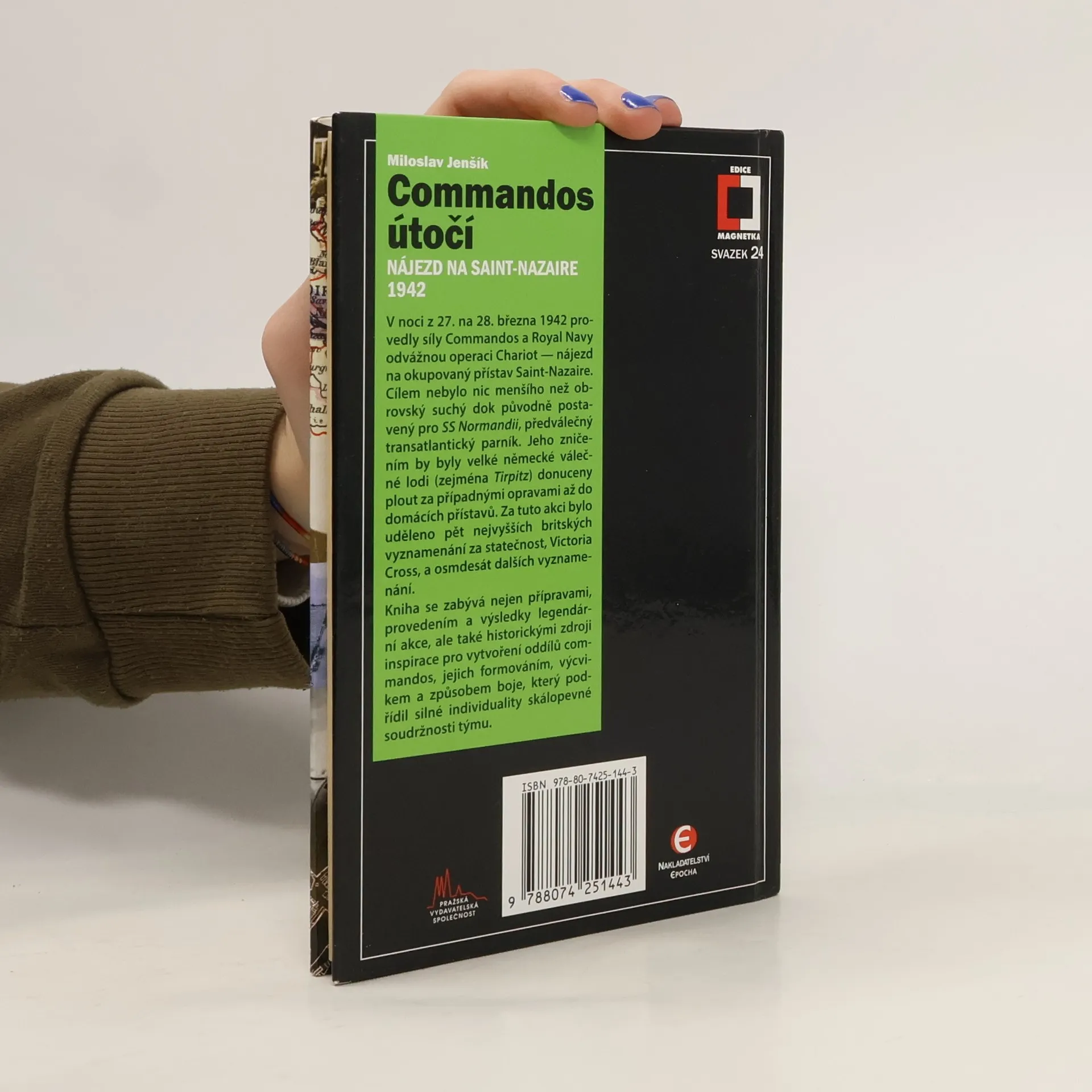 V noci z 27. na 28. března 1942 provedly síly Commandos a Royal Navy odvážnou operaci Chariot - nájezd na okupovaný přístav Saint-Nazaire. Cílem nebylo nic menšího než obrovský suchý dok původně postavený pro SS Normandii, předválečný transatlantický parník. Jeho zničením by byly velké německé válečné lodi (zejména Tirpitz) donuceny plout za případnými opravami až do domácích přístavů. Za tuto akci bylo uděleno pět nejvyšších britských vyznamenání za statečnost, Victoria Cross, a osmdesát dalších vyznamenání. Kniha se zabývá nejen přípravami, provedením a výsledky legendární akce, ale také historickými zdroji inspirace pro vytvoření oddílů Commandos, jejich formováním, výcvikem a způsobem boje, který podřídil silné individuality skálopevné soudržnosti týmu.